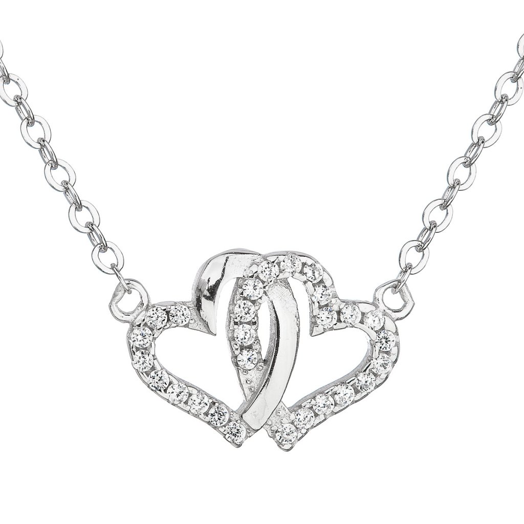 Potešte svoju lásku týmto nádherným strieborným náhrdelníkom s 2 spojenými srdcami, ktoré sú vysadené trblietavými zirkónmi.