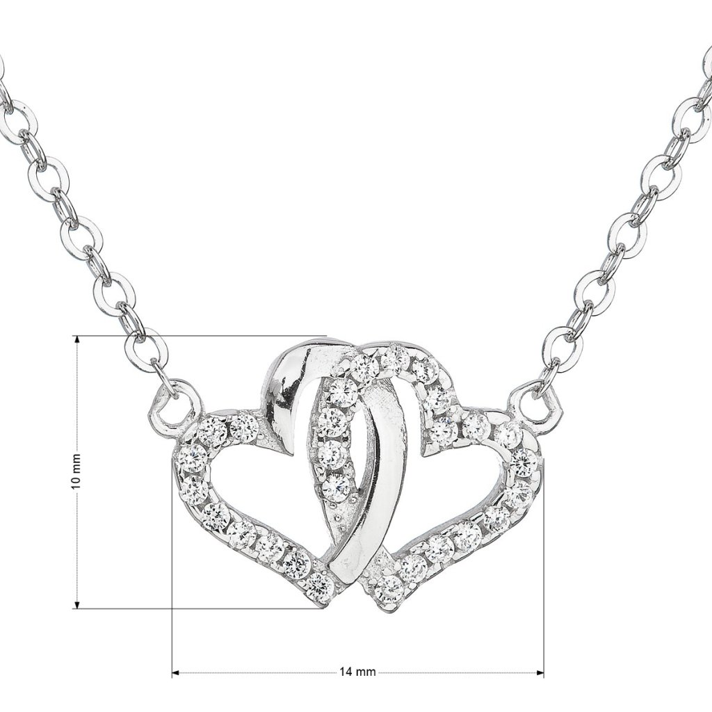 Strieborný náhrdelník 12006.1 o dĺžke 42 cm je vyrobený zo striebra o rýdzosti 925/1000 s povrchovou úpravou ródiom, ktorá bráni sčernaniu, zožltnutiu a poškriabaniu šperku. Na retiazke sú zavesené 2 navzájom spojené srdcia zdobené bielymi zirkónmi. Šperk neobsahuje nikel , a tak je vhodný pre citlivé osoby aj pre alergikov.