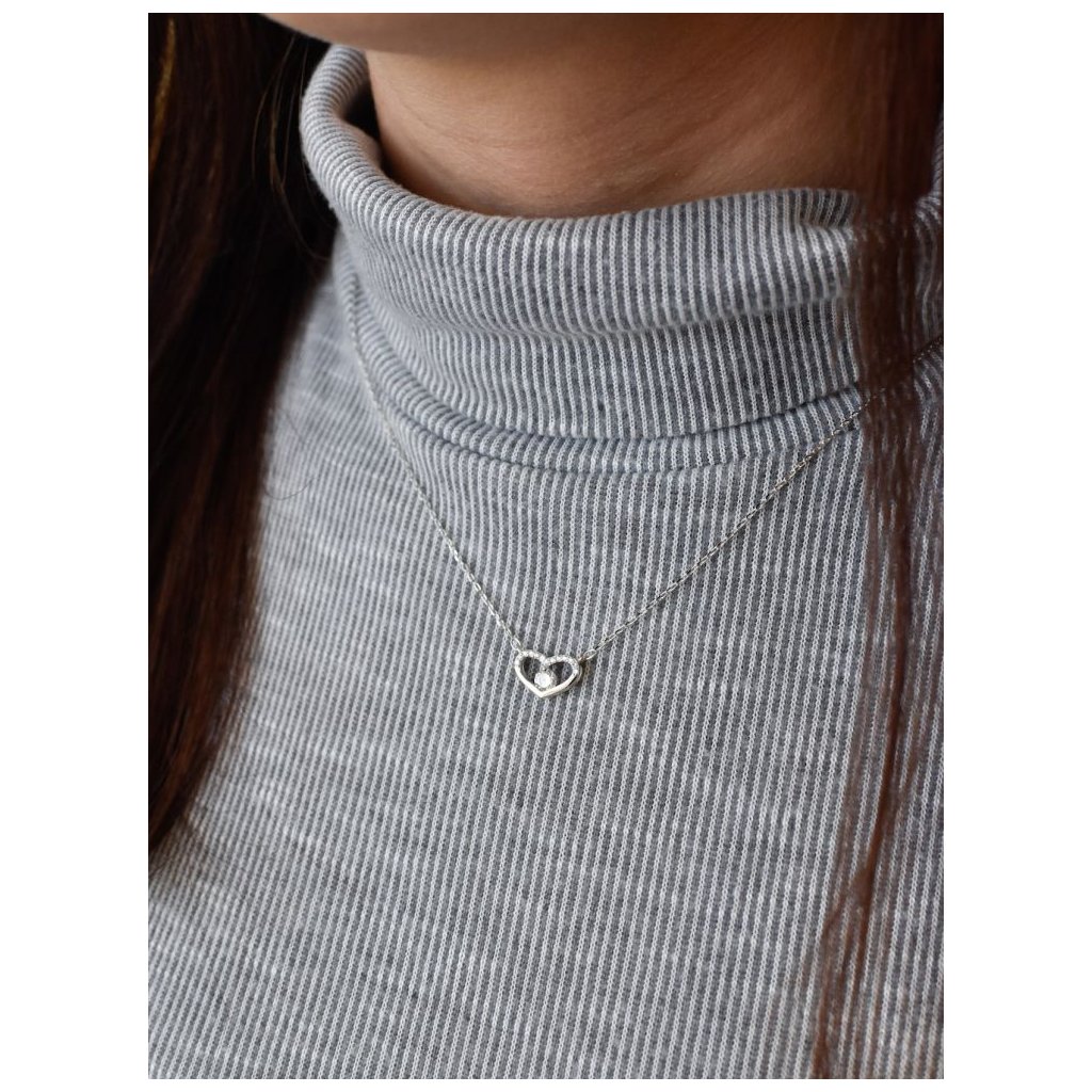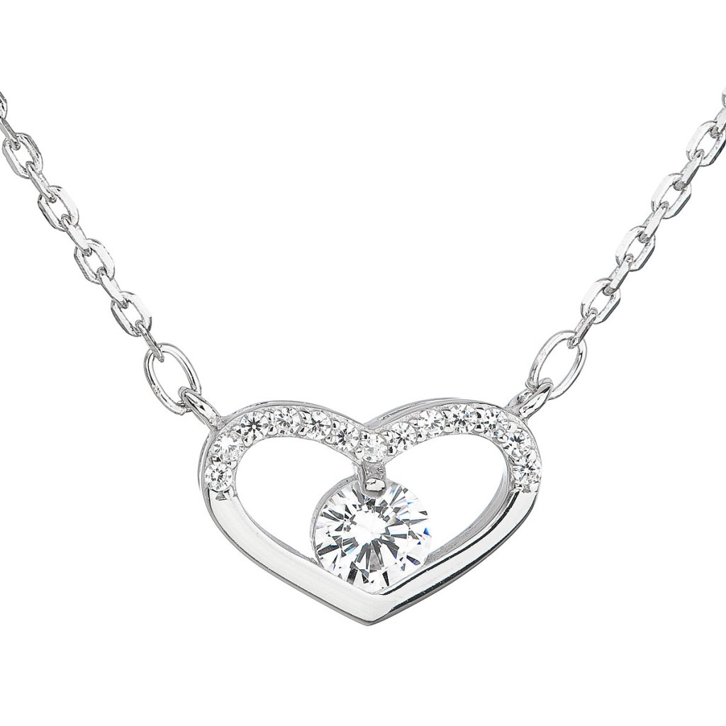 Strieborný náhrdelník so zirkónom biele srdce 12008.1