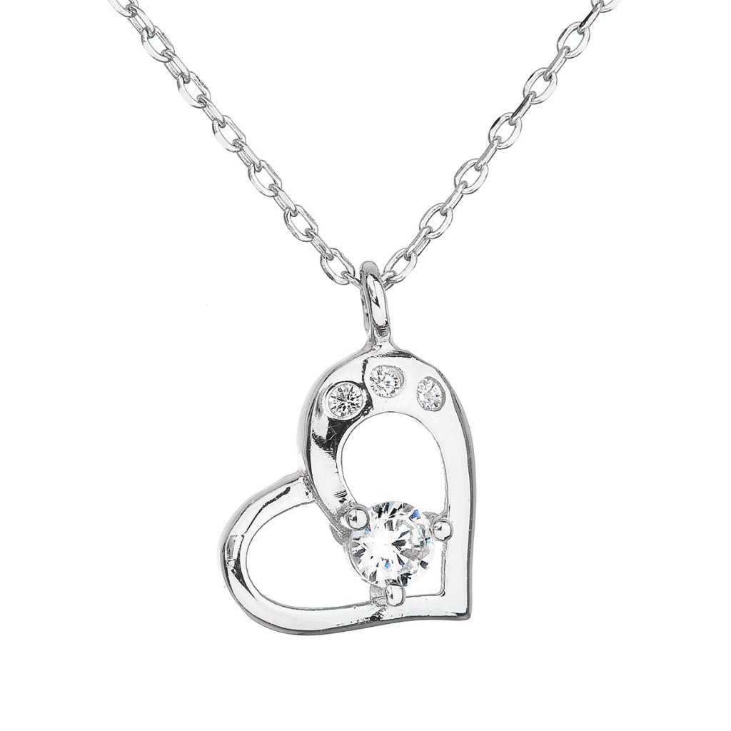 Strieborný náhrdelník so zirkónom biele srdce 12022.1