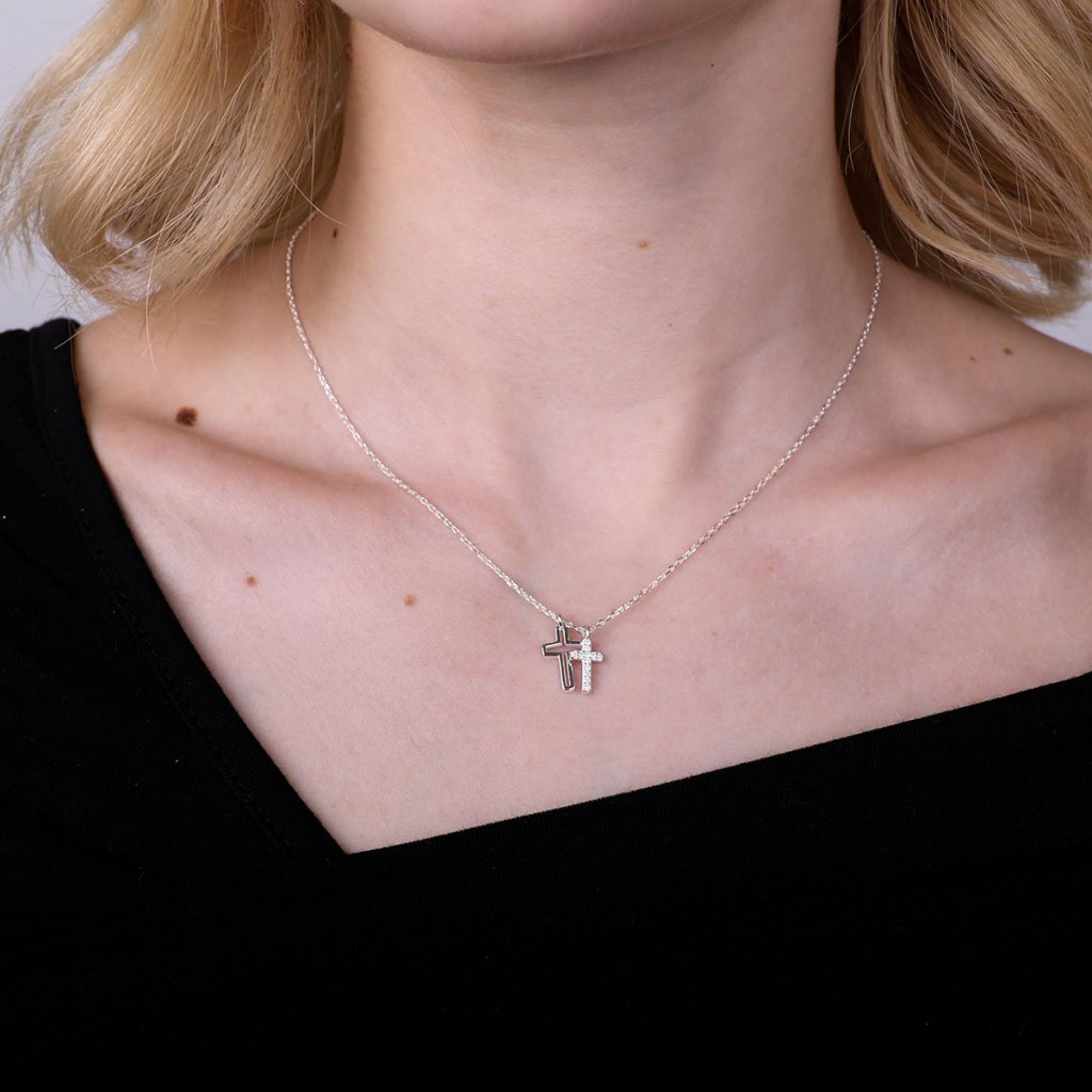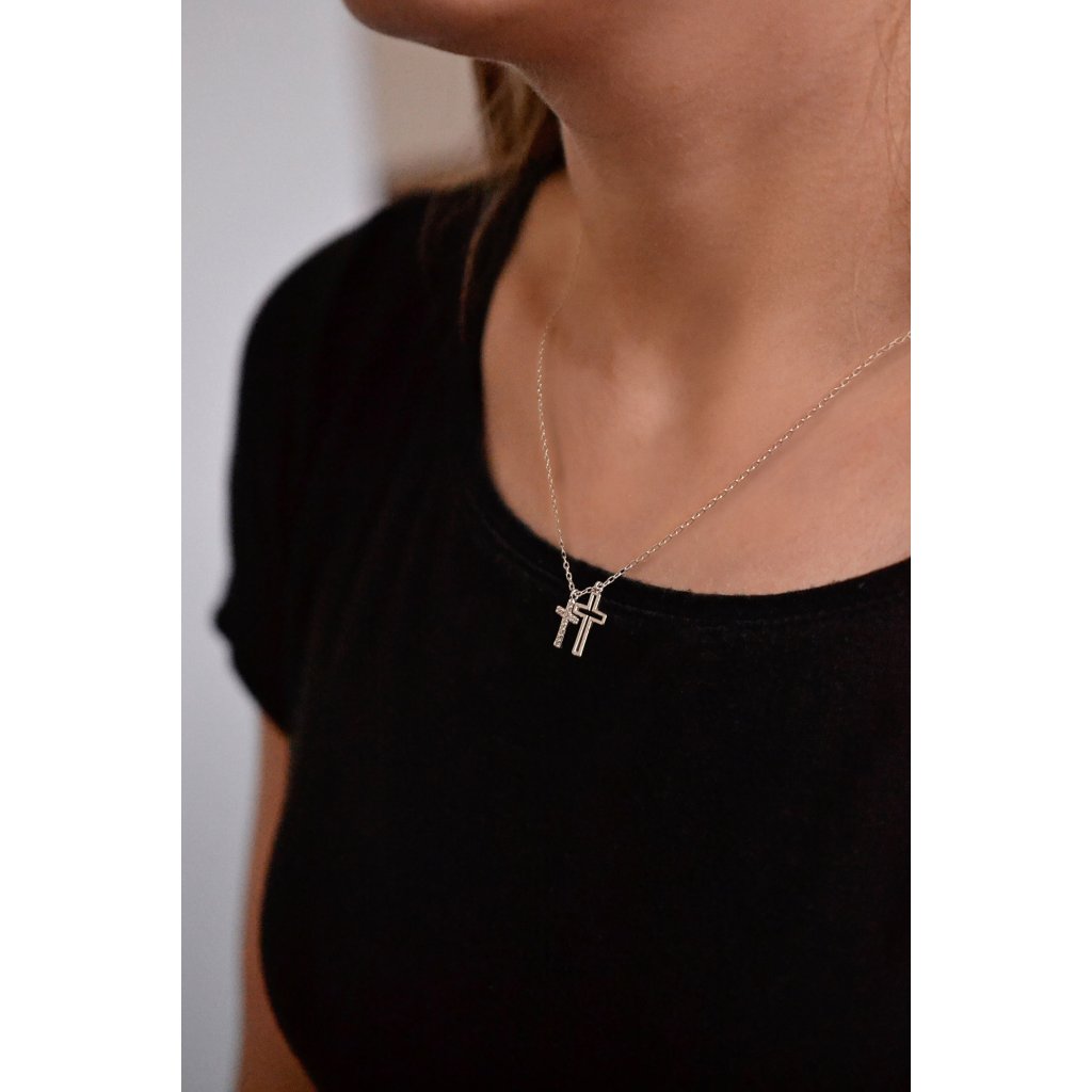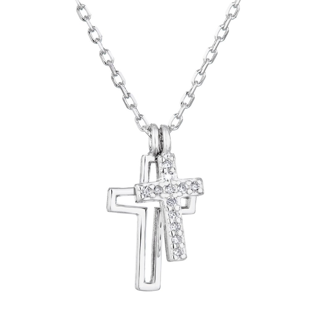 Noste svoj zdroj sily aj viery neustále pri sebe. Kedykoľvek potrebujete dočerpať energiu, stačí siahnuť na krížik...Tradičný náhrdelník 12012.1 v modernom prevedení je vytvorený zo striebra o rýdzosti 925/1000 vrátane povrchovej úpravy ródiom. Ródium ochráni šperk proti sčerneniu, zožltnutiu i poškriabaniu. Náhrdelník neobsahuje žiadny nikel, je tak vhodný pre alergikov. Retiazku zdobia dva krížiky rôznych veľkostí. Ten menší kríž žiari vďaka drobným zirkónom. Prívesok je umiestnený na hrubšej retiazke.