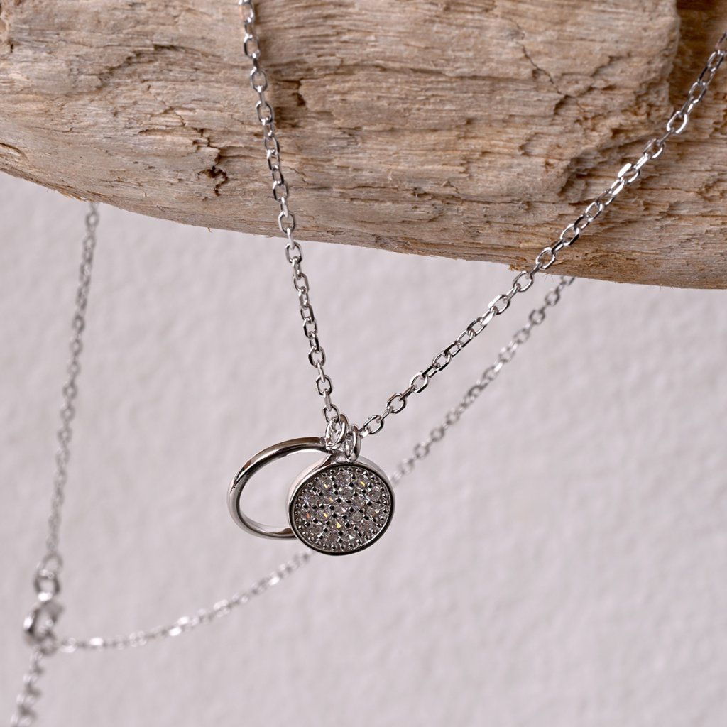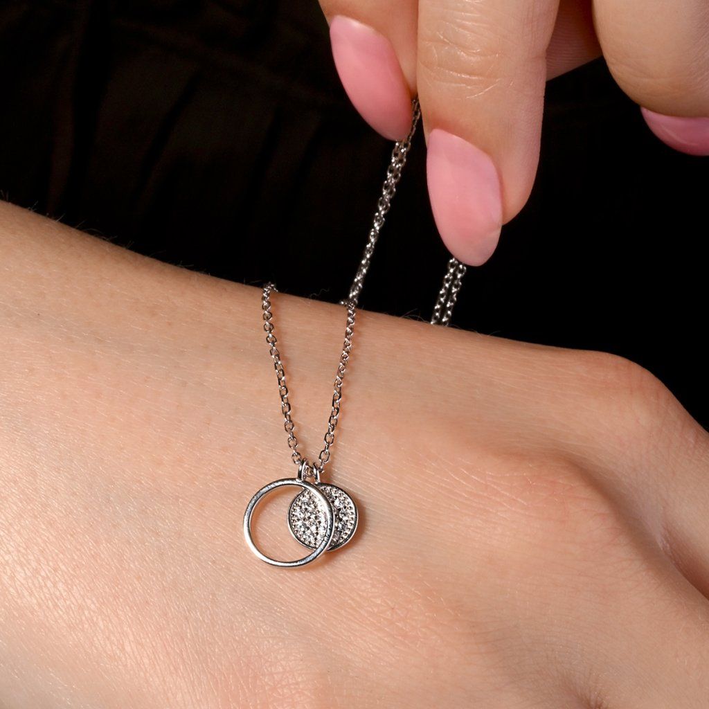 Buďte stredom vesmíru! A to vďaka žiarivému okrúhlemu prívesku, ktorý pripomína časť slnečnej sústavy.Nápaditý náhrdelník 12011.1 o dĺžke 46 cm je vyrobený zo striebra o rýdzosti 925/1000 vrátane povrchovej úpravy ródiom. Ródium ochráni šperk proti sčerneniu, zožltnutiu i poškriabaniu. Náhrdelník neobsahuje nikel, je tak vhodný pre alergikov. Retiazka je zdobená menším kruhom vysadeným drobnými čírymi zirkónmi a väčším kruhom bez zirkónov.