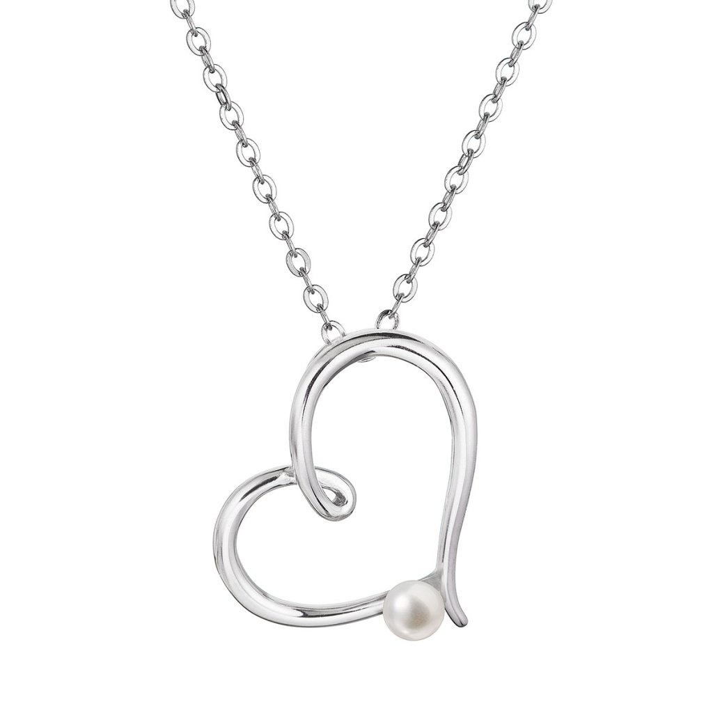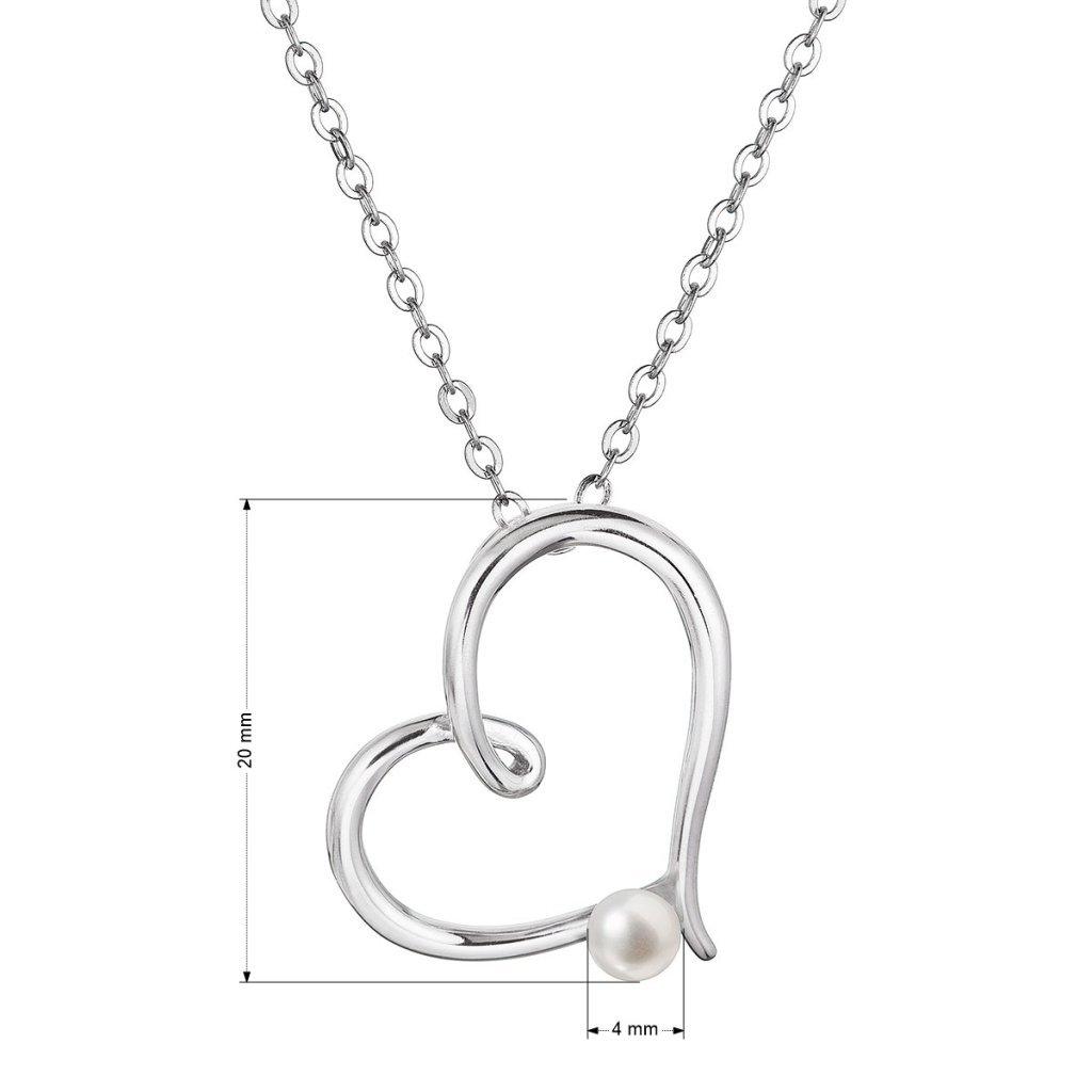 Strieborný náhrdelník srdca s malou bielou riečnou perličkou 22045.1