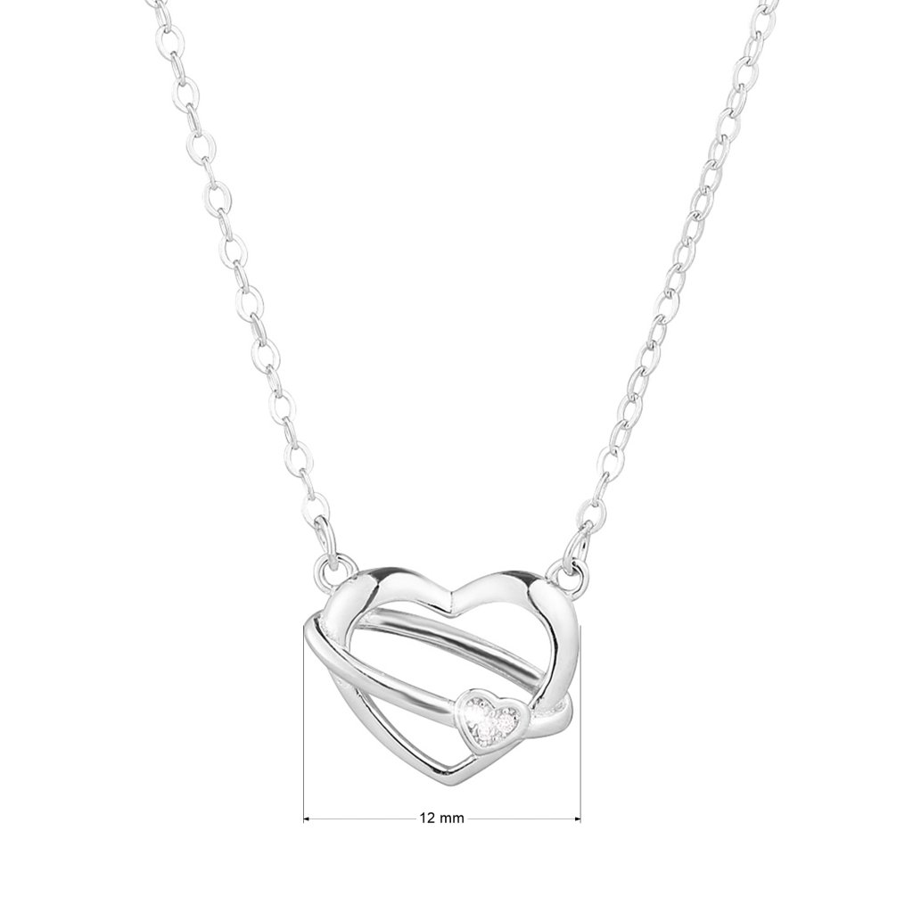 Strieborný náhrdelník srdca so srdiečkom zo zirkónu 12099.1 crystal