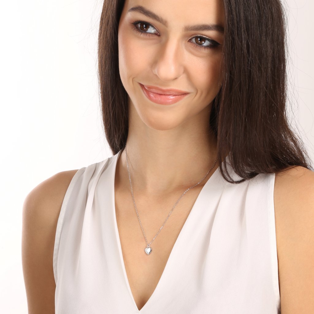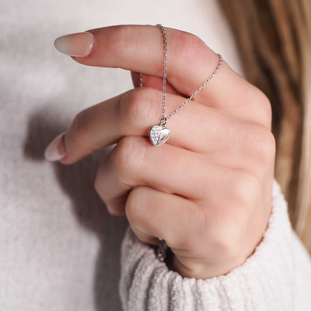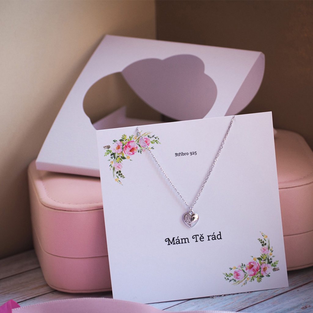 Na retiazke je zavesený strieborný prívesok v tvare srdca zdobený zirkónmi. Náhrdelník neobsahuje nikel, a tak si ho bez obáv môžu zobrať aj alergici.