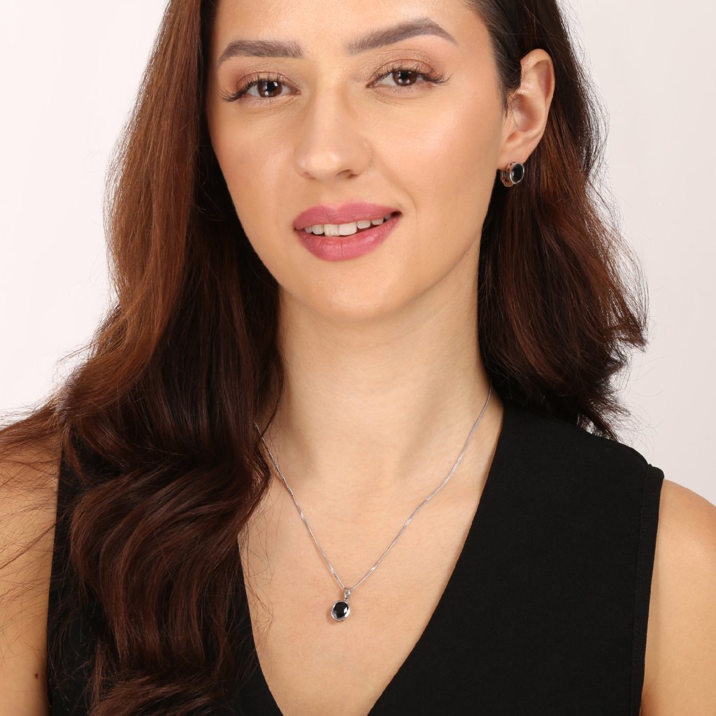 Strieborný náhrdelník tmavo modrý zafír 12087.3