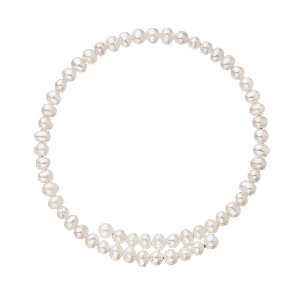 Strieborný náramok bielej riečnej perličky na pamäťovom drôtiku 23020.1