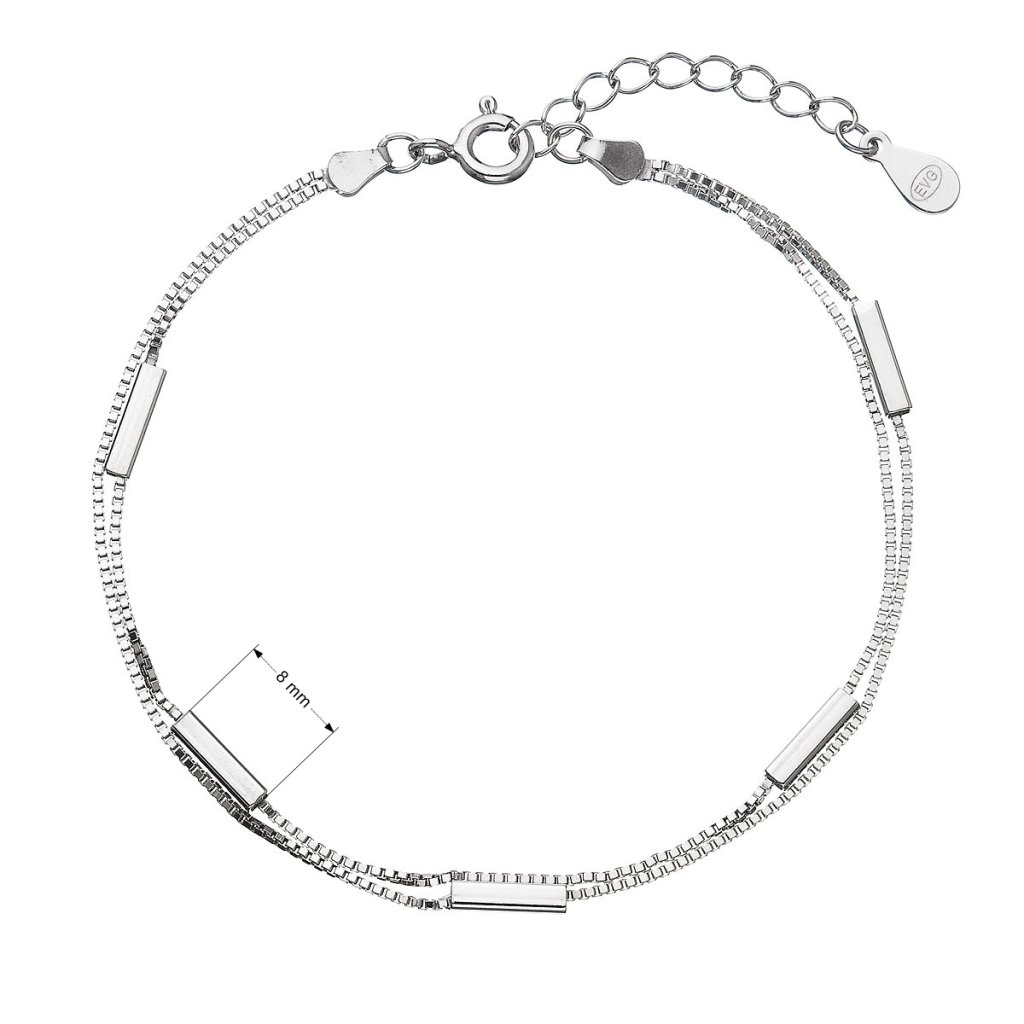 Parametre strieborného náramku dvojitá retiazka s obdĺžnikmi 63005