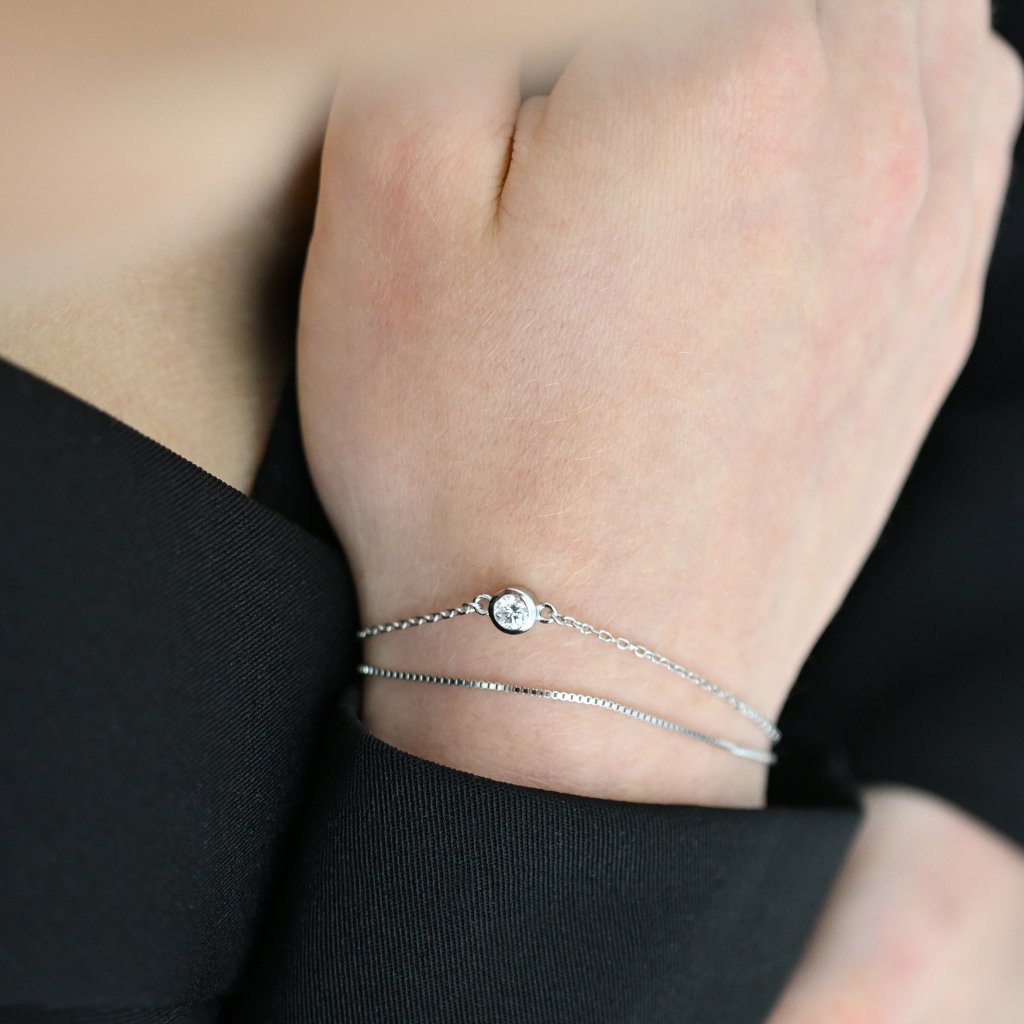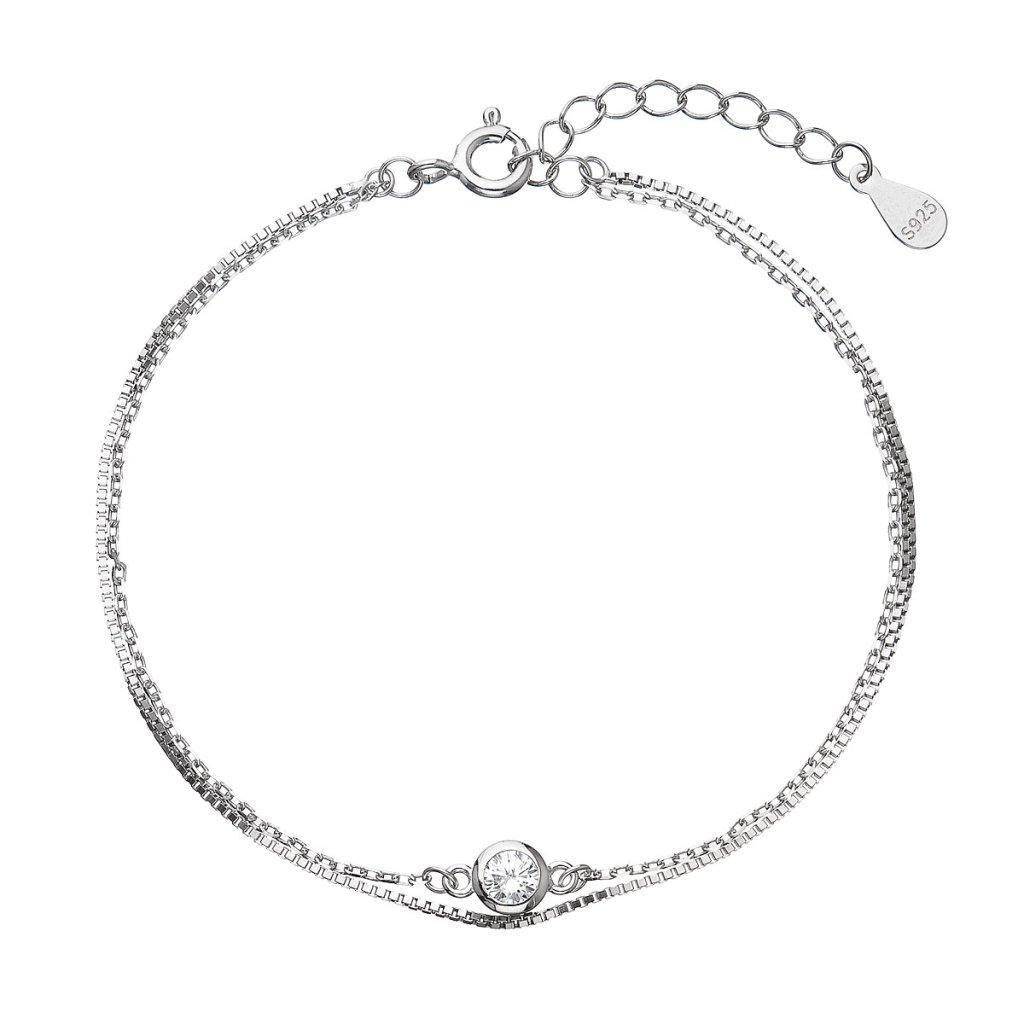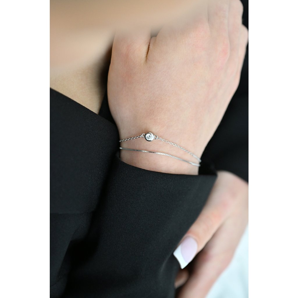 Strieborný náramok dvojitá retiazka so zirkónom 63006