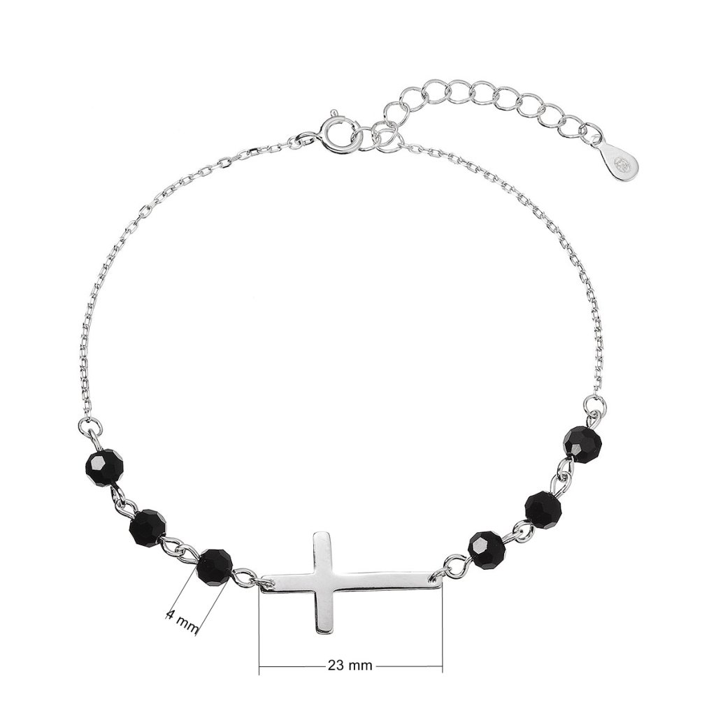 Strieborný náramok krížik s čiernymi korálkami 13062.3