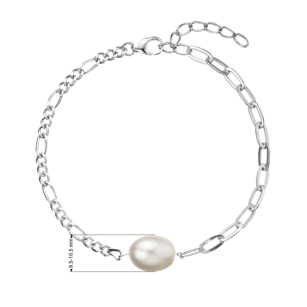 Strieborný náramok retiazka s očkami a jednou oválnou perlou 23026.1