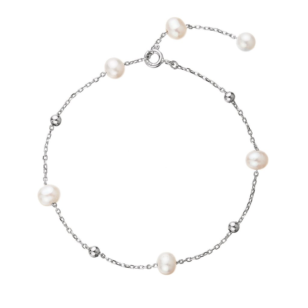 Strieborný náramok retiazka s riečnymi perlami striedavo so striebornou guličkou 23021.1
