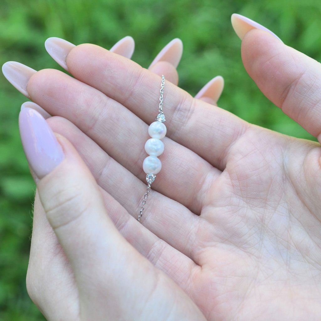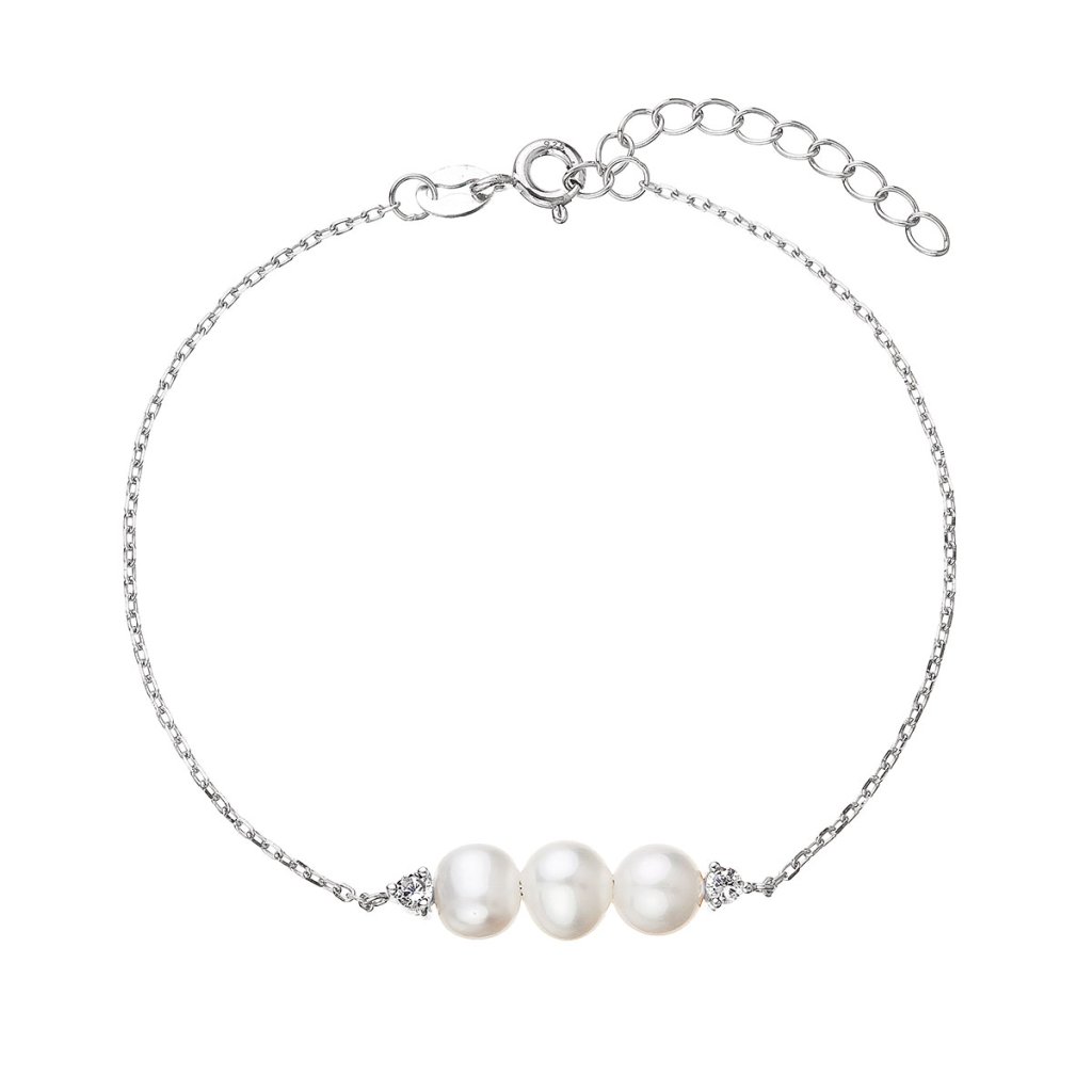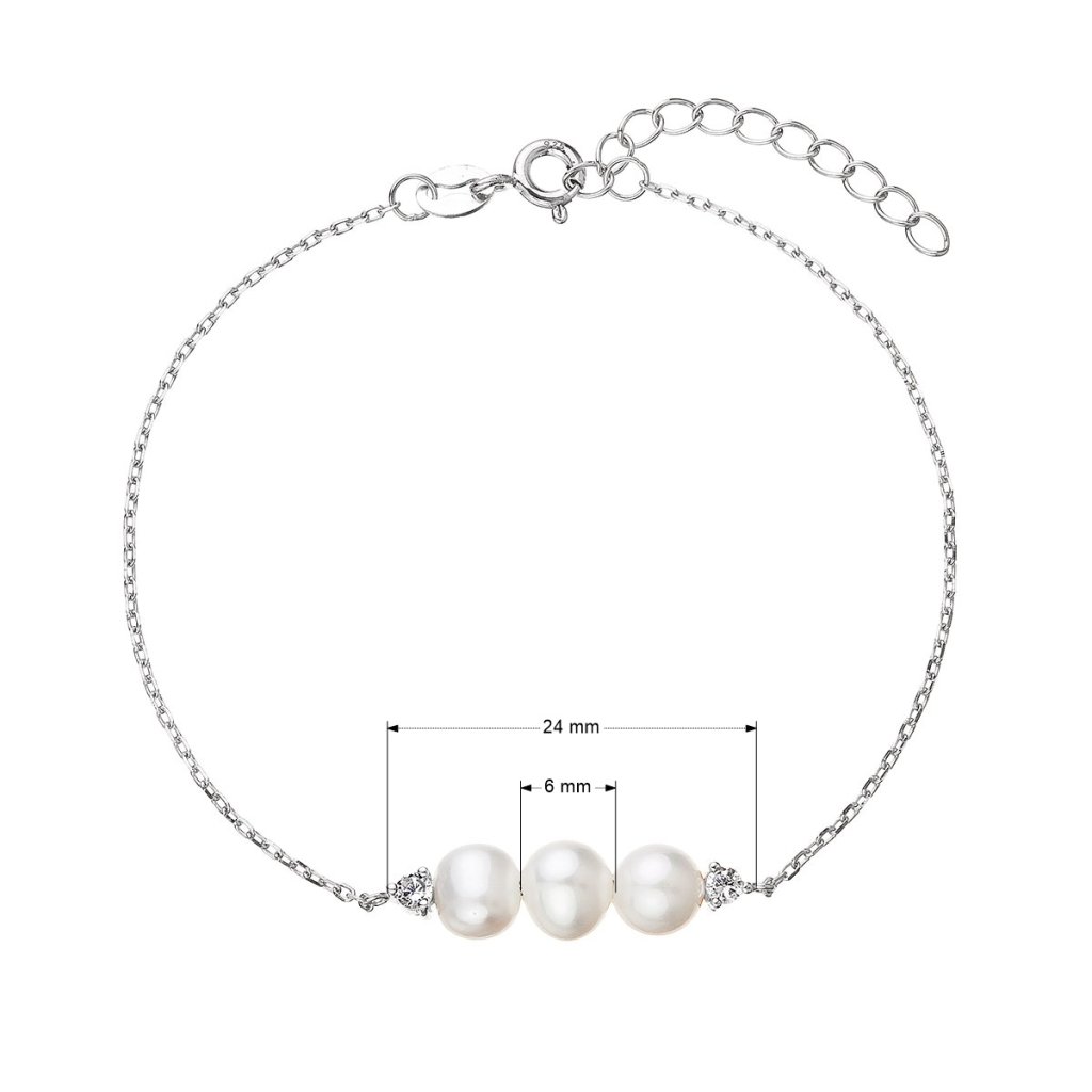 Strieborný náramok retiazka s tromi riečnymi perlami a zirkónmi 23018.1