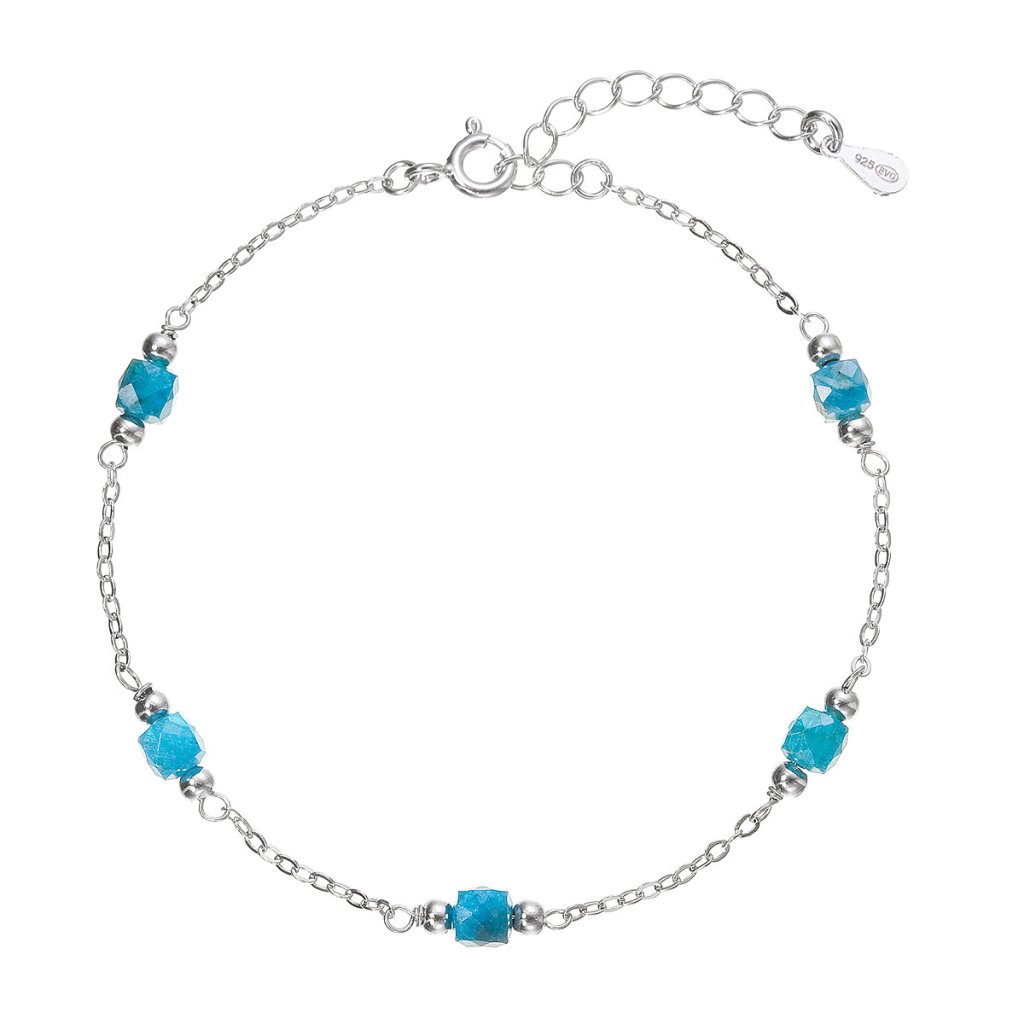 Jemný strieborný náramok s drobnými fazetovanými apatitmi v nádhernej výraznej modrej farbe.