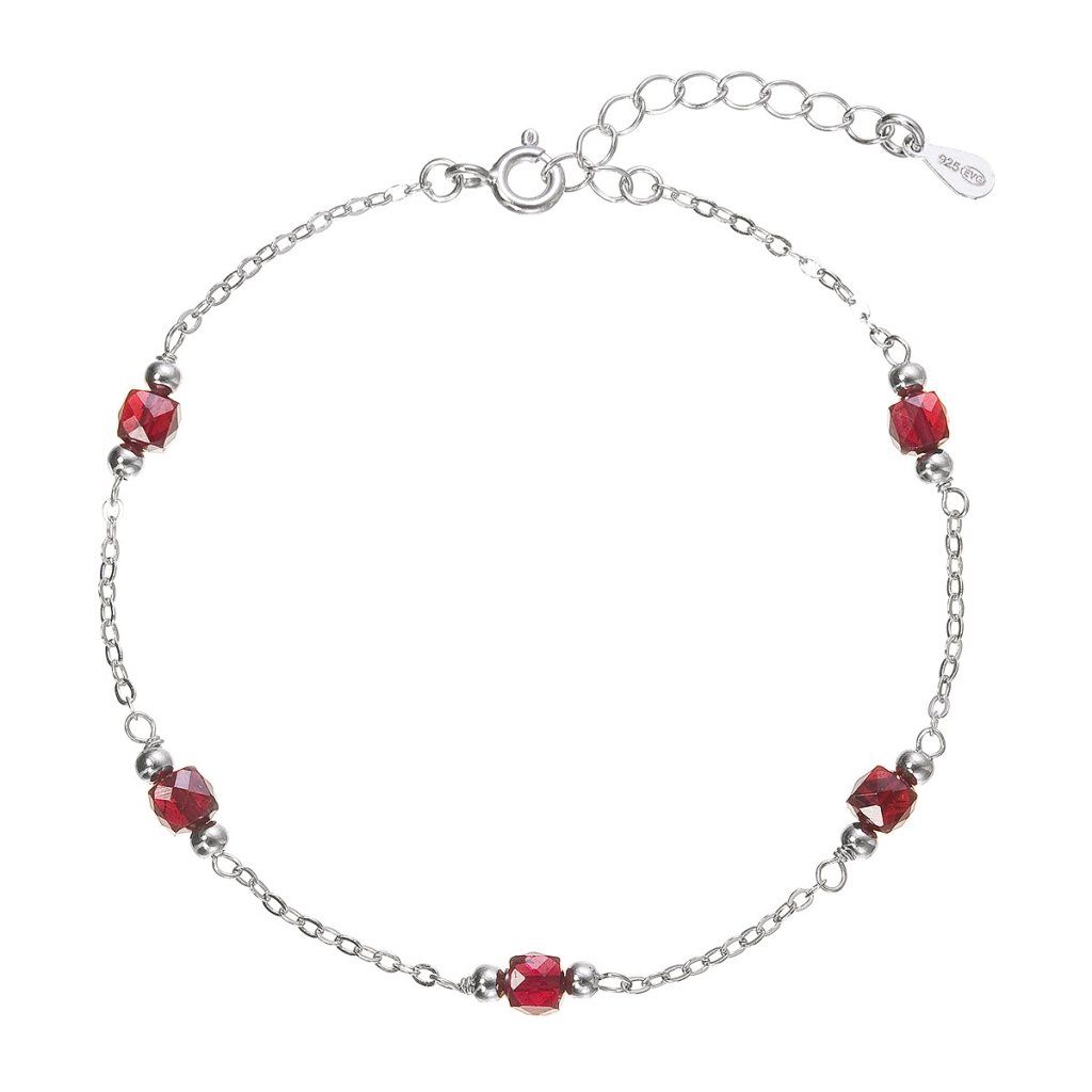 Jemný strieborný náramok s drobnými fazetovanými granátmi v nádhernej sýto červenej farbe.