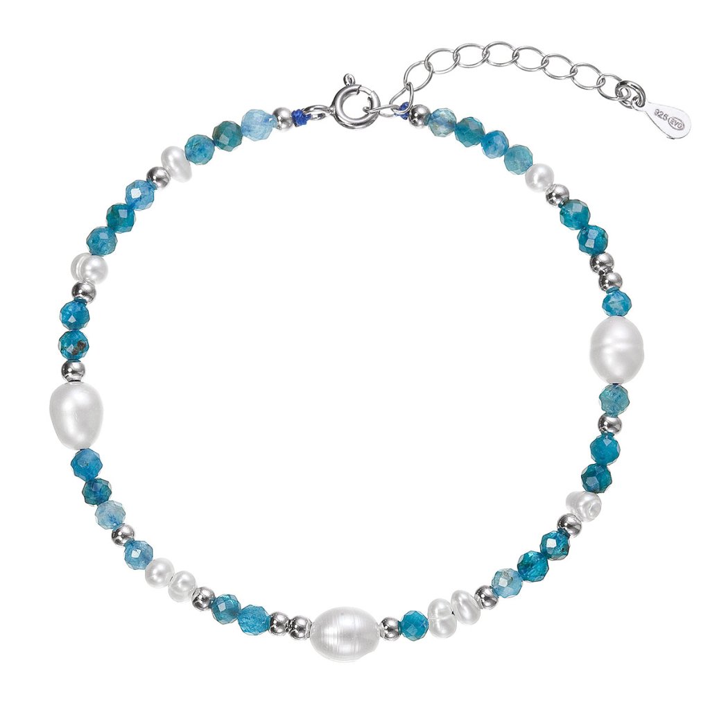 Strieborný náramok s perlami a apatitmi 13113.3