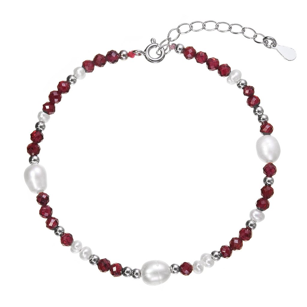 Tento elegantný náramok je tvorený kombináciou pravých riečnych perál rôznych tvarov a drobných korálikov temne červeného granátu. Lesklé perly s jemným perleťovým odleskom krásne kontrastujú so sýtou, hlbokou farbou granátu, ktorá šperku dodáva výrazný a luxusný charakter.