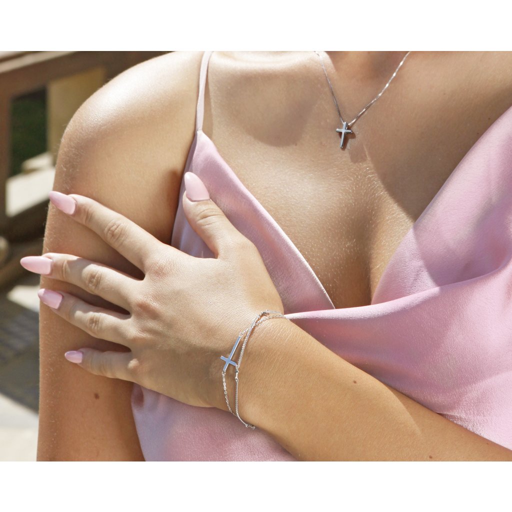 Jemný tradičný retiazkový náramok s obľúbeným motívom krížika . Krížik je väčší, neprehliadnuteľný a napriek tomu pôsobí náramok jemne.