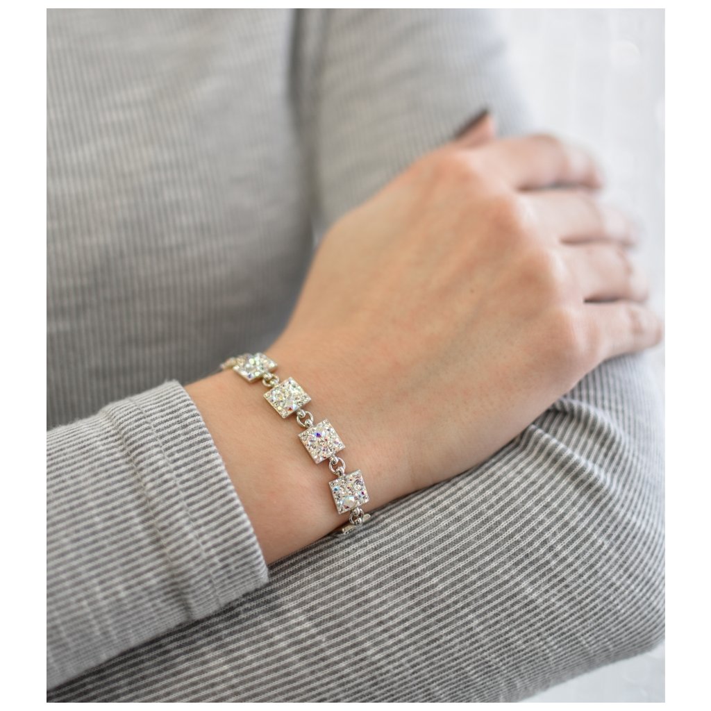 Náramok 33047.2 je vyrobený zo striebra 925/1000 s povrchovou úpravou ródiom. Ródium chráni šperk pred sčernením, zožltnutím a poškriabaním. Náramok s dĺžkou 17 cm je zložený z niekoľkých štvorcov vysadených AB Swarovski kryštálmi. Šperk neobsahuje nikel , a tak je vhodný pre citlivé osoby a alergikov.Strieborný náramok so Swarovski kryštálmi 33047.2 pre vás ručne vyrobili šikovné šperkárky z našej prevádzky v Jablonci nad Nisou . Poctivá ručná práca je vám doložená pečaťou kvality ao pravosti Swarovski kryštálov vás presvedčí certifikát pravosti, ktorý je priložený k šperku. Šperk vám dodáme v originálnej darčekovej krabičke.