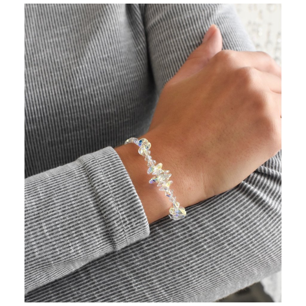 Strieborný náramok so Swarovski kryštálmi AB efekt 33107.2
