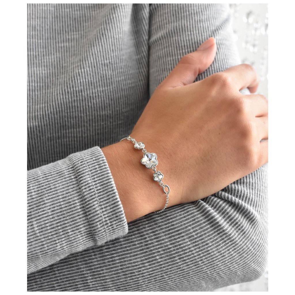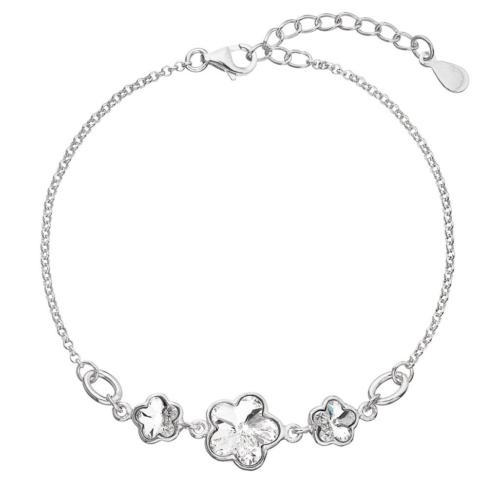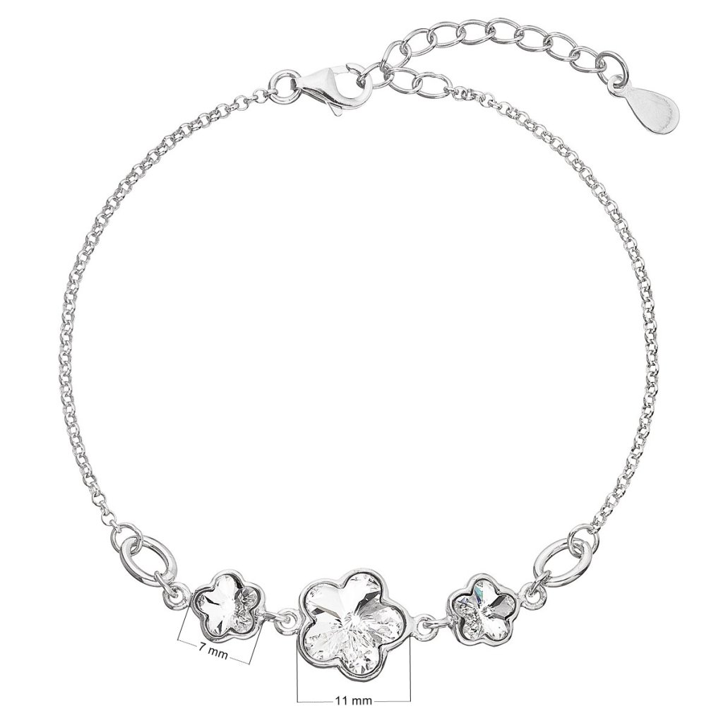 Strieborný náramok so Swarovski kryštálmi biela kytička 33112.1