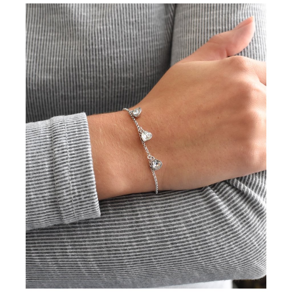 Parametre strieborného náramku so Swarovski kryštálmi biele srdce 33108.1