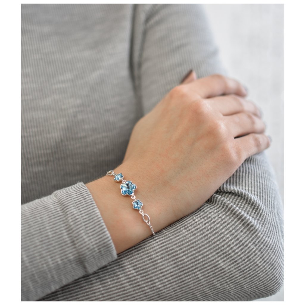 Strieborný náramok so Swarovski kryštálmi modrá kytička 33112.3