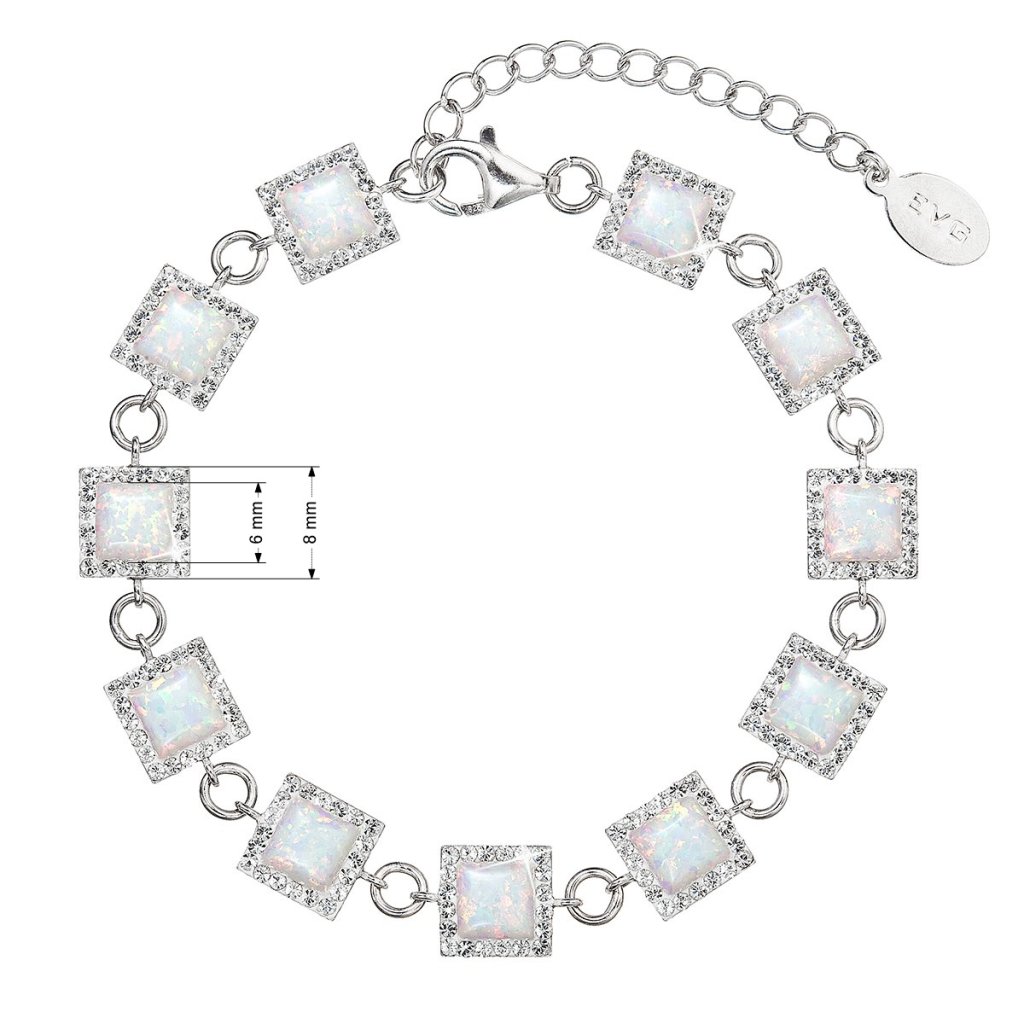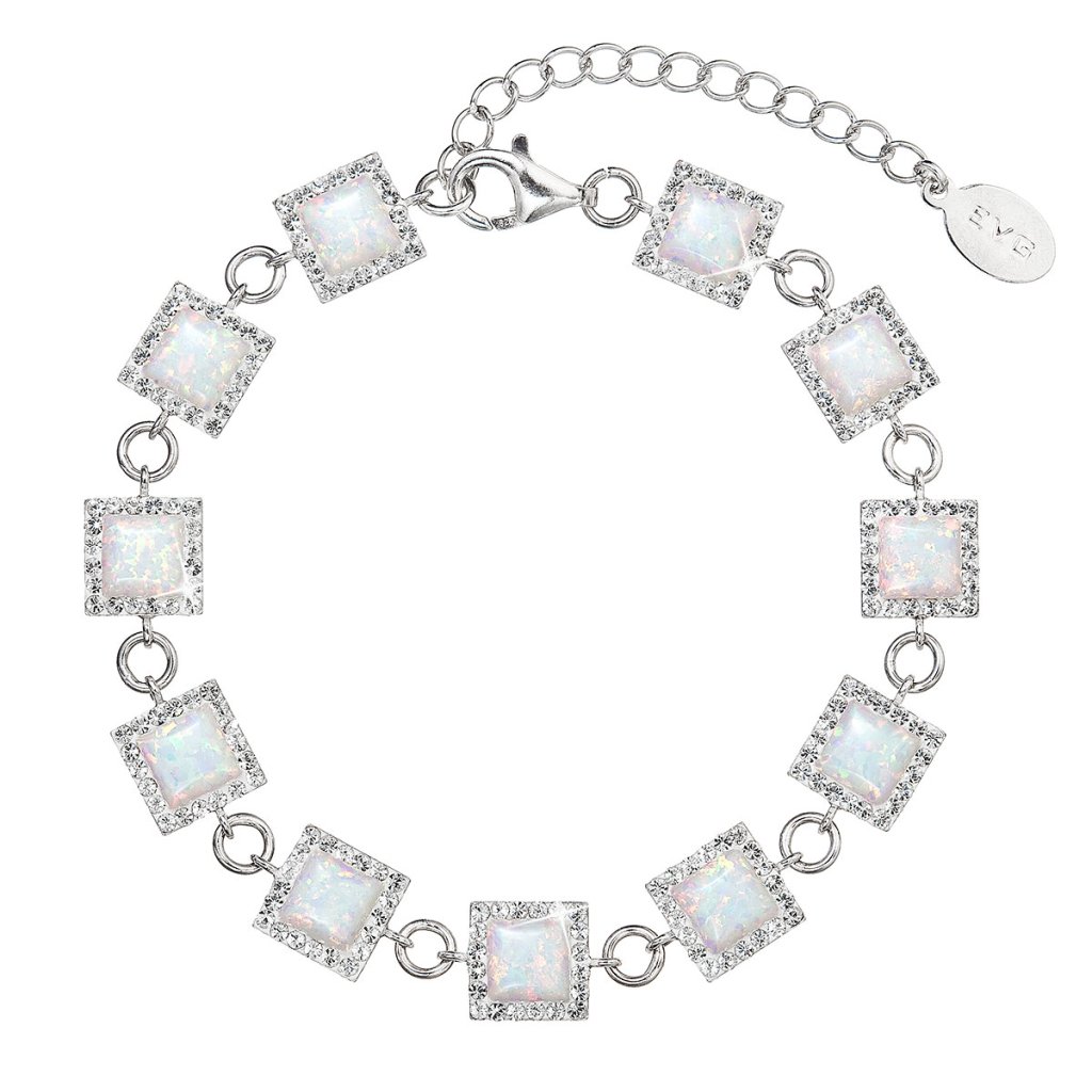 Strieborný náramok so syntetickým opálom a kryštálmi Preciosa biely štvorec 33047.1 white