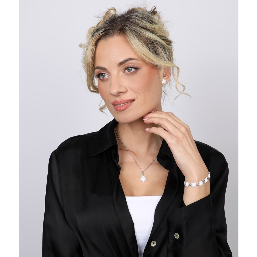 Zaujmite originálnym a bohato zdobeným náramkom s Preciosa kryštálmi, ktorý nádherne dozdobí vaše zápästie!Strieborný náramok 33047.1 je vyrobený zo striebra rýdzosti 925/1000, ktorého povrch bol ošetrený ródiom . Rhodium šperk ochráni proti sčernaniu, zožltnutiu aj poškriabaniu. Náramok je zložený zo strieborných štvorčekov, ktoré sú bohato vysadené Preciosa kryštálmi v bielej farbe a uprostred je štvorcový biely syntetický opál. Keďže náramok neobsahuje prídavok niklu , môžu ho bez obáv z alergickej reakcie nosiť aj alergici.