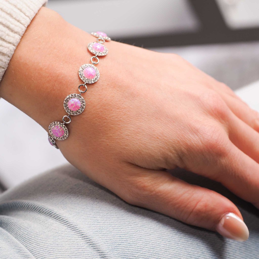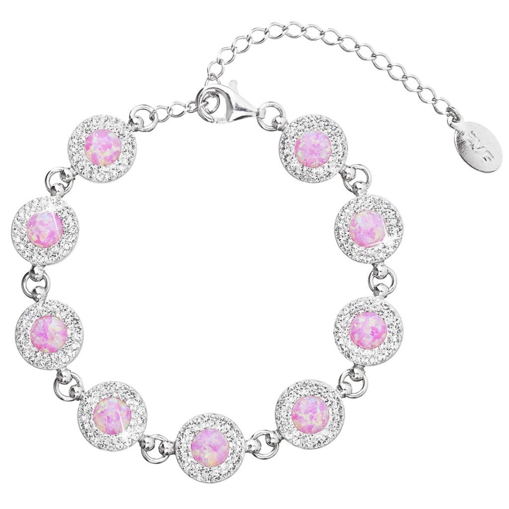 Strieborný náramok so syntetickým opálom a kryštálmi Preciosa ružový 33105.1