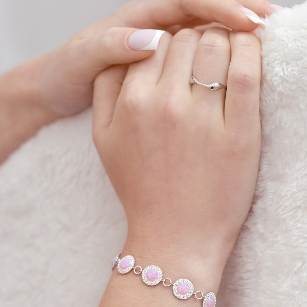 Parametre strieborného náramku so syntetickým opálom a kryštálmi Preciosa ružový 33105.1