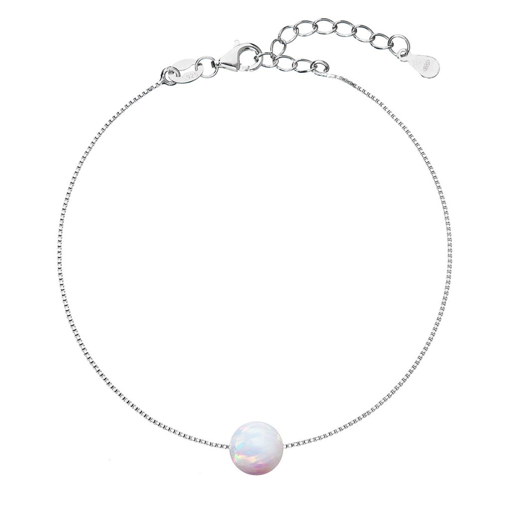 Strieborný náramok so syntetickým opálom biely okrúhly 13019.1