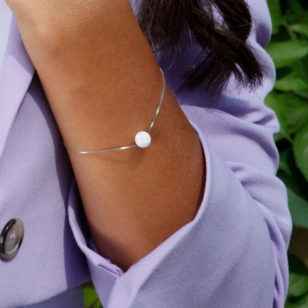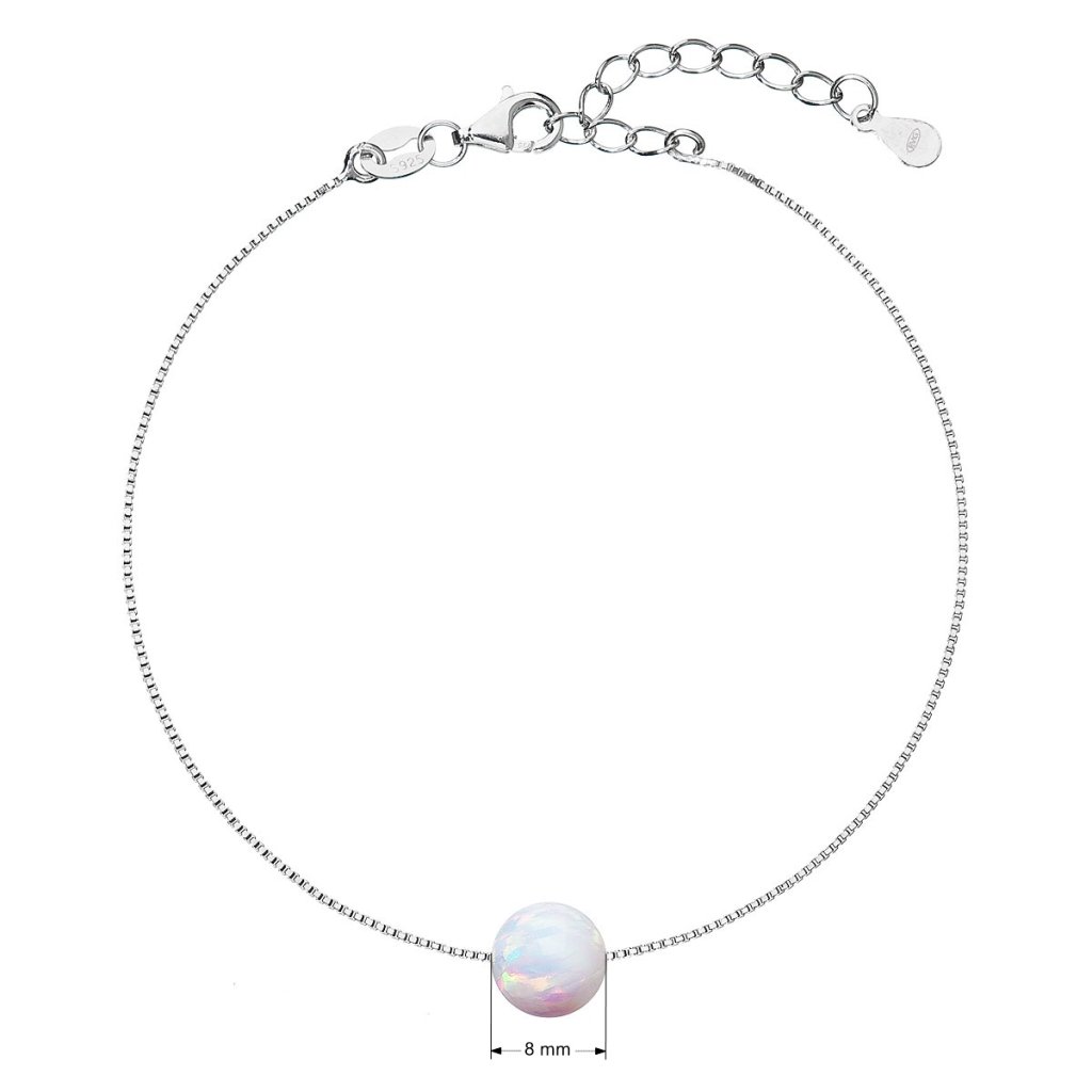 Parametre strieborného náramku so syntetickým opálom biely okrúhly 13019.1