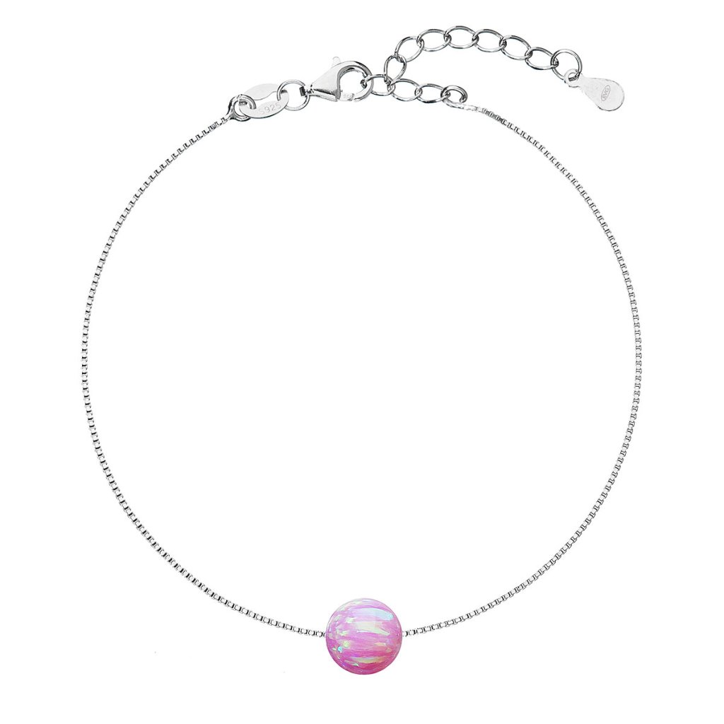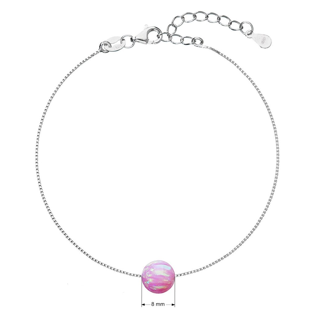 Strieborný náramok so syntetickým opálom ružový okrúhly 13019.3