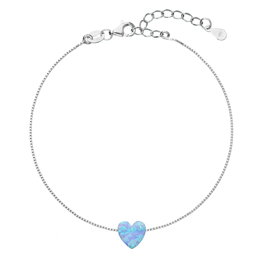 V krásnom letnom období nechajte vaše zápästie zvýrazniť jemným strieborným náramkom s opálom tvaru srdiečka.