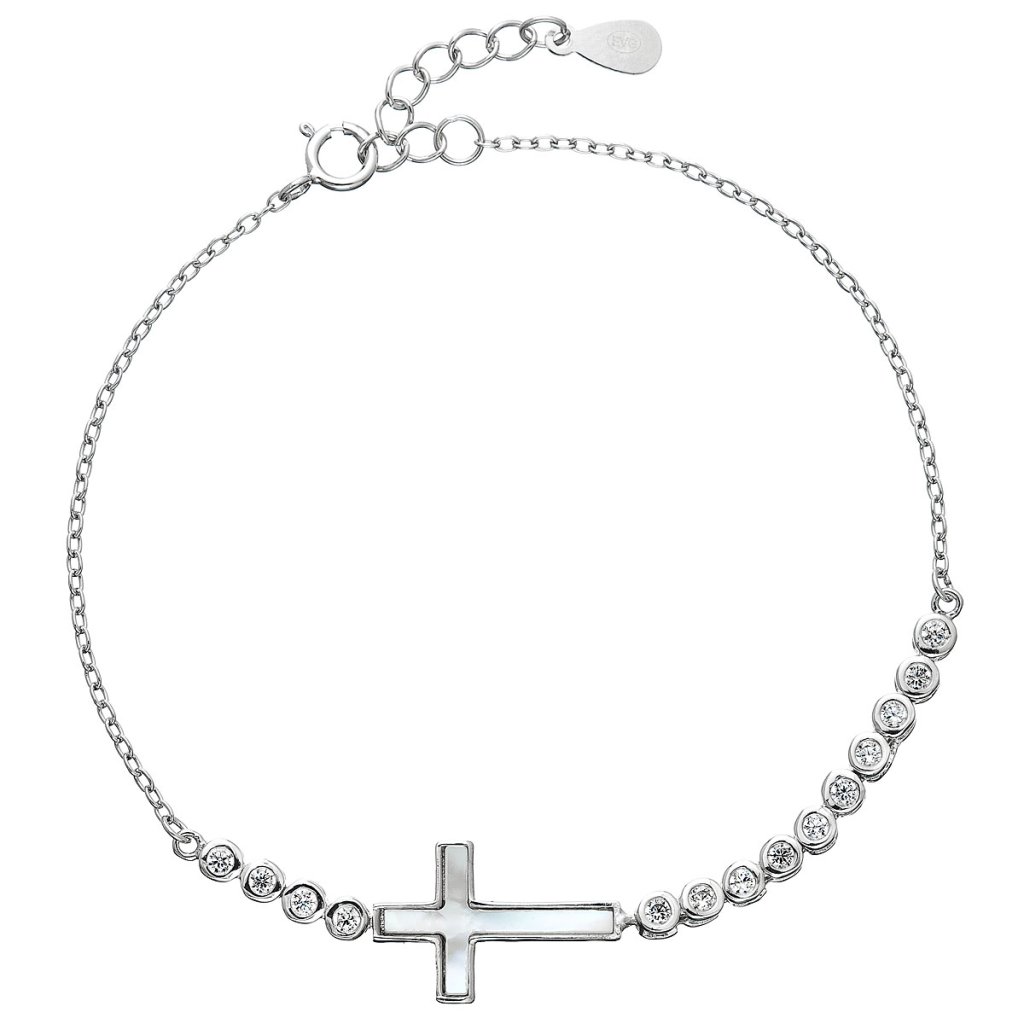 Parametre strieborného náramku so zirkónmi krížik 13016.1