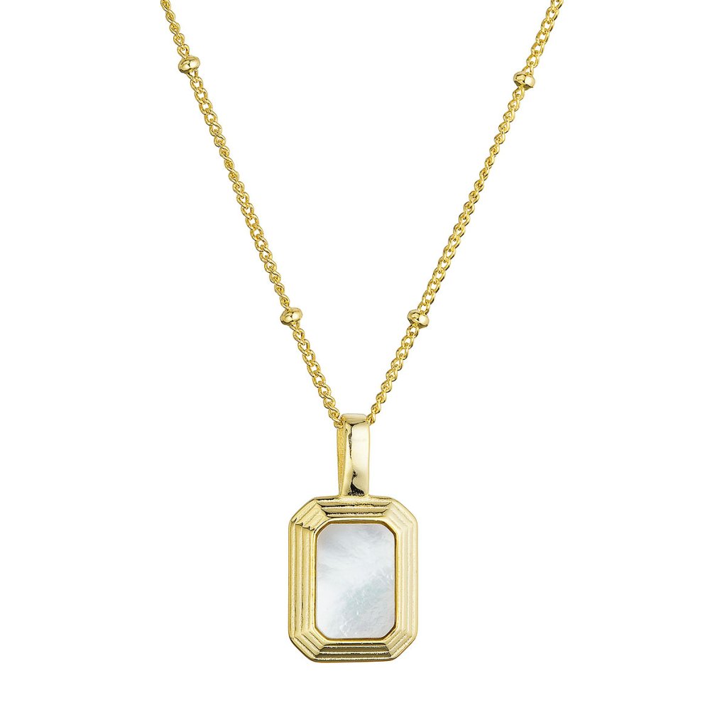 Strieborný pozlátený náhrdelník s perleťou obojstranný 12154.1 biely
