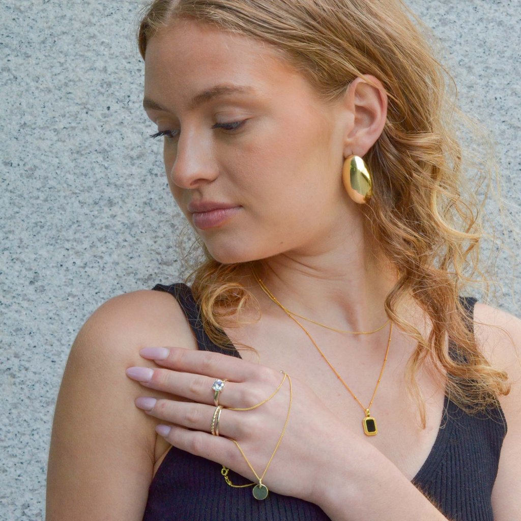 Pozlátený strieborný náhrdelník so syntetickou perleťou a čiernym achátom ponúka jedinečný obojstranný dizajn , ktorý vám umožní meniť vzhľad šperku podľa nálady či príležitosti. Na jednej strane sa nachádza nádherná syntetická biela perleť, ktorá dodáva šperku jemný lesk a sofistikovanosť, zatiaľ čo druhá strana ukrýva fascinujúci syntetický čierny achát, ktorý prináša tajomnú a elegantnú eleganciu.