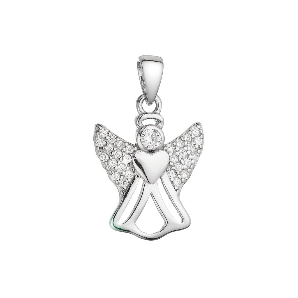 Strieborný prívesok anjel so zirkónmi biely 14027.1
