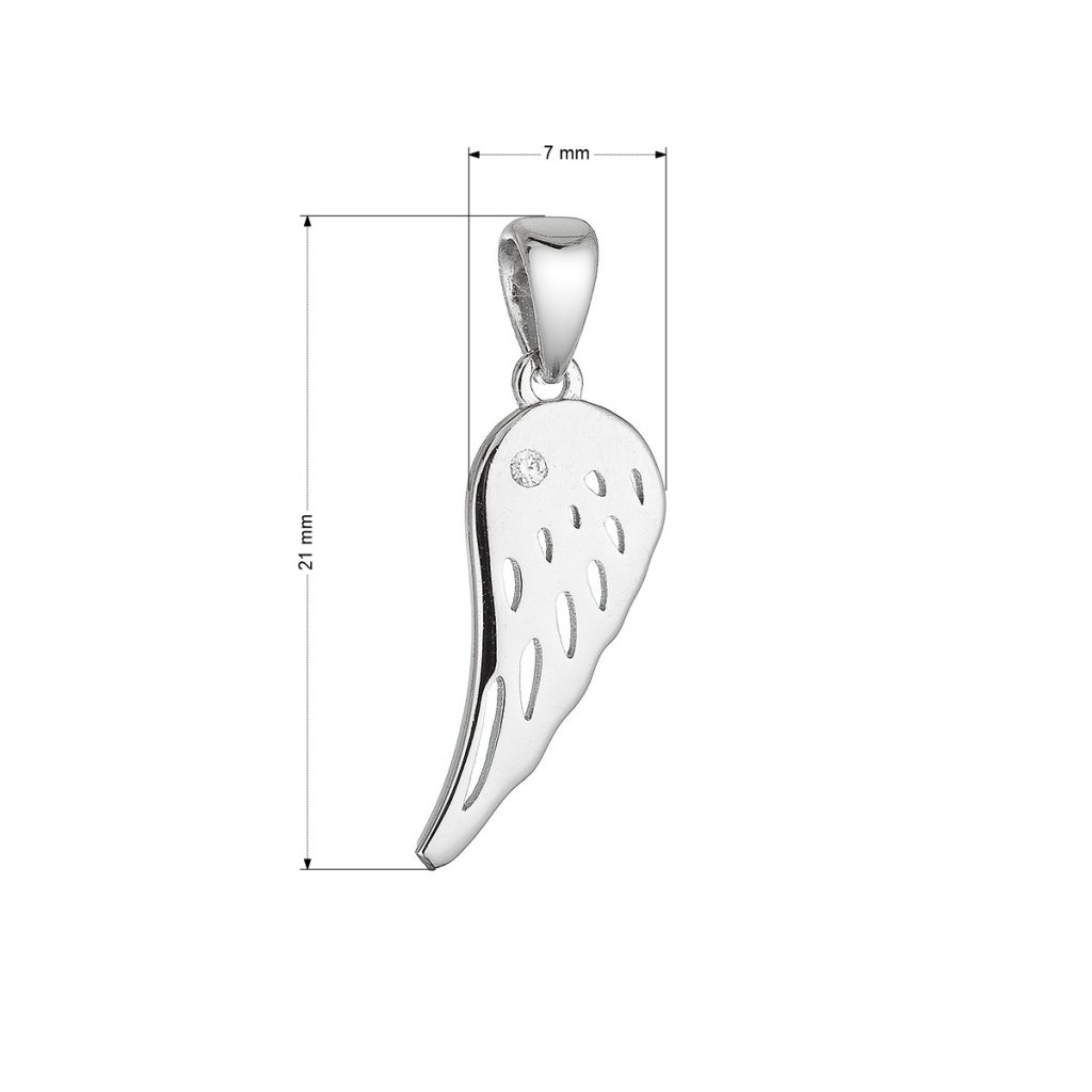 Decentný dizajn anjelského krídla je v hornej časti doplnený trblietavým čírym zirkónom , ktorý dodáva šperku iskru a eleganciu. Starostlivo vyrezávané detaily pierok podčiarkujú ľahkosť a nehu tohto symbolického motívu.