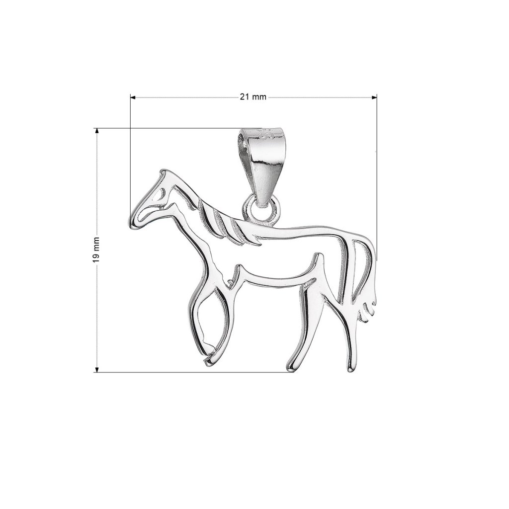 Strieborný prívesok 64035 v tvare koníka je vyrobený zo striebra o rýdzosti 925/1000 vrátane povrchovej úpravy ródiom. Ródium ochráni šperk proti nechcenému sčernaniu, zožltnutiu i poškriabaniu.