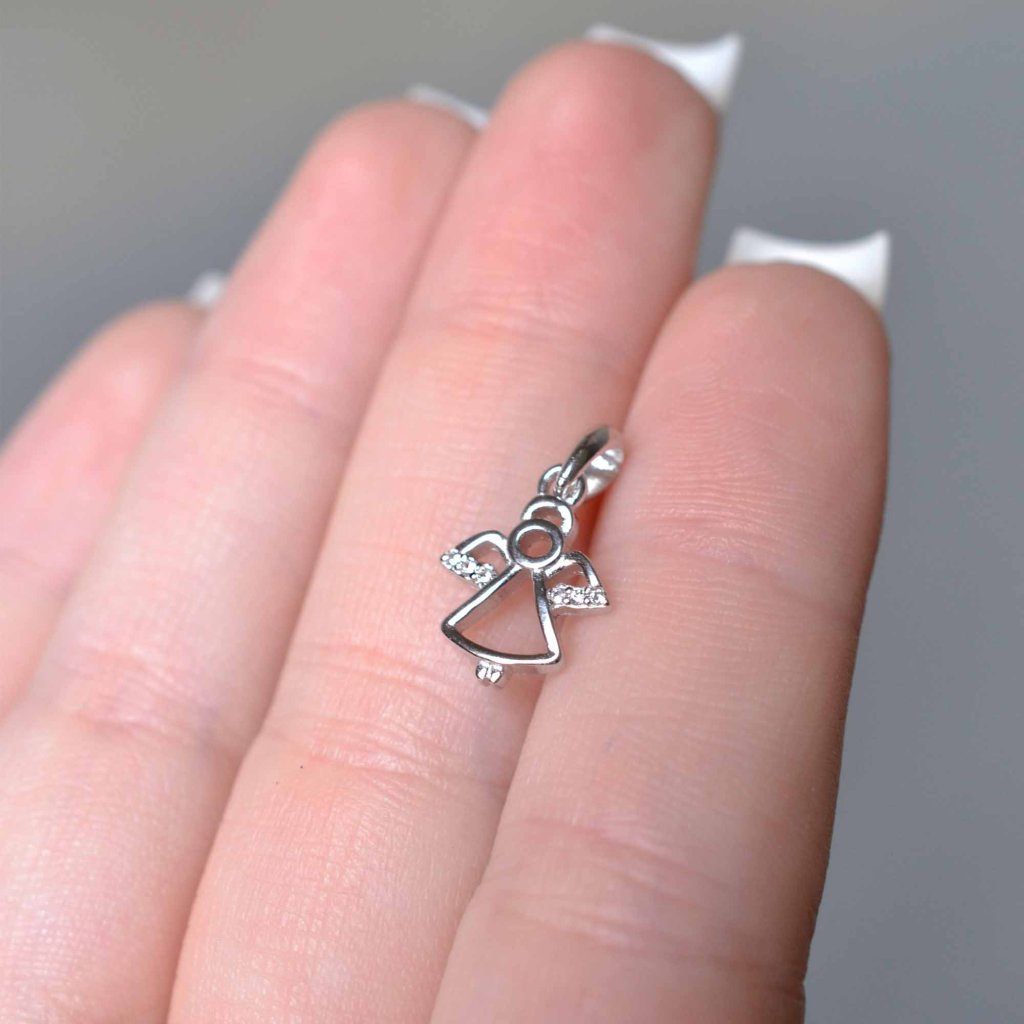 Symbolický darček pre kamarátku, sestru alebo mamičku, ktorá je Vaším strážnym anjelom. Prívesok v tvare anjela. Na krídlach sa nachádzajú žiarivé zirkóny bielej farby.Prívesok 14030.1 je vyrobený zo striebra o rýdzosti 925/1000 vrátane povrchovej úpravy ródiom. Ródium chráni šperk proti žčernaniu alebo poškriabaniu. Neobsahuje nikel , a tak ho bez obáv môžu nosiť aj alergici.