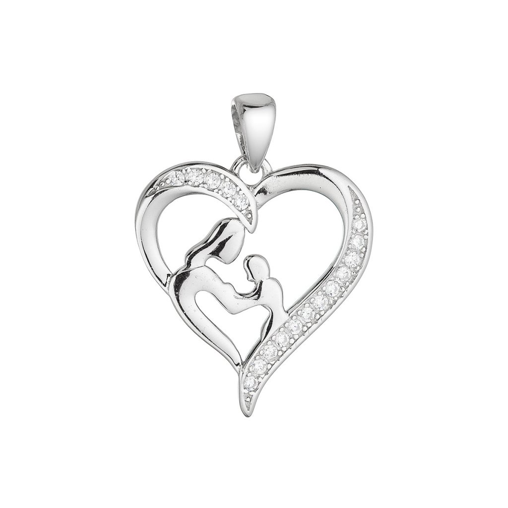 Strieborný prívesok v tvare srdca nesie silné posolstvo – zobrazuje obrys matky, ktorá sa láskyplne skláňa k svojmu dieťaťu. Vnútorné siluety tvoria jedinečný príbeh materstva , nehy a ochrany.