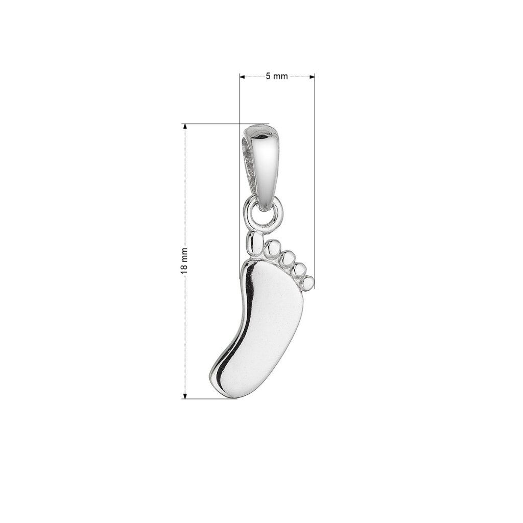 - Verne znázorňuje odtlačok malej nožičky so starostlivo vykreslenými prstíkmi a pätičkou . Hladký, lesklý povrch dodáva šperku elegantný vzhľad.