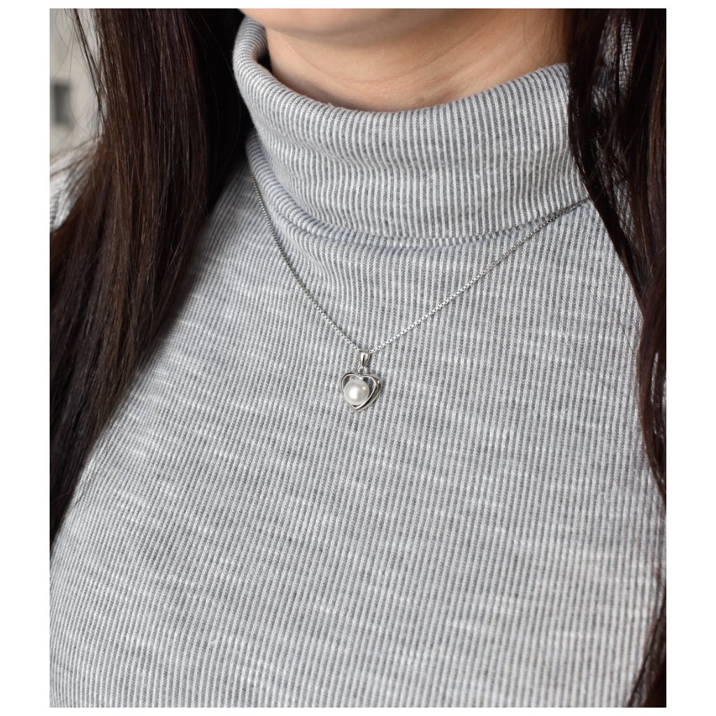 Strieborný prívesok s bielou Swarovski perlou srdca 34246.1