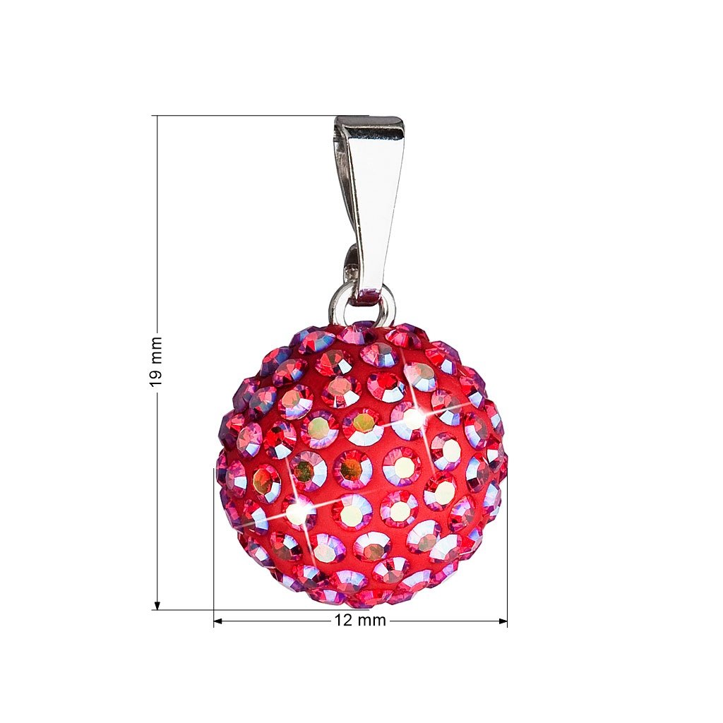 Parametre strieborného prívesku s kryštálmi červený okrúhly 734080.4