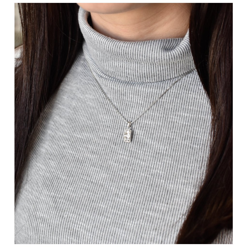- jednoduchý strieborný prívesok v tvare dvoch spojených štvorčekov