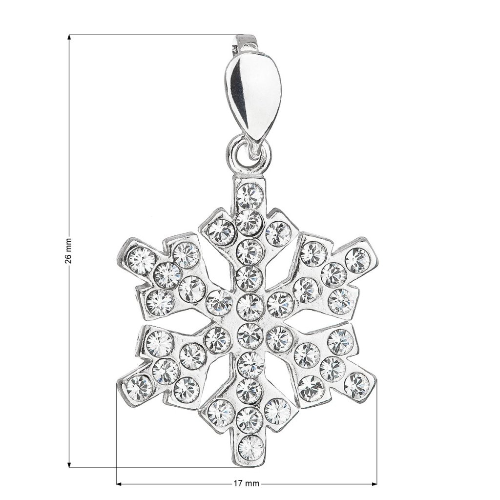 Čím doplniť svoj slávnostný outfit na Štedrovečernú večeru? Čo tak strieborným príveskom v tvare snehovej vločky ?Strieborný prívesok 34221.1 snehová vločka má dĺžku 26 mm a je bohato vysadený bielymi Swarovski kryštálmi. Na prívesok bolo použité striebro rýdzosti 925/1000, ktorého povrch prešiel úpravou ródiom. Rhodium šperk ochráni proti sčernaniu, zožltnutiu alebo poškriabaniu. Šperk neobsahuje nikel, a tak ho môžu bez obáv nosiť aj alergici.
