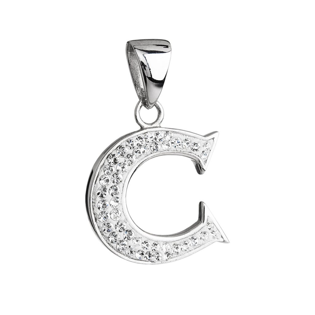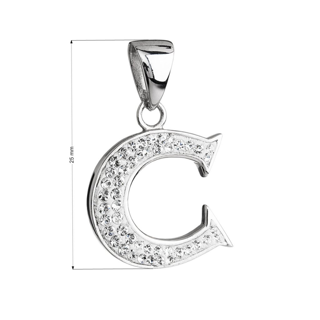 Strieborný prívesok s kryštálmi Swarovski biele písmeno C 34102.1