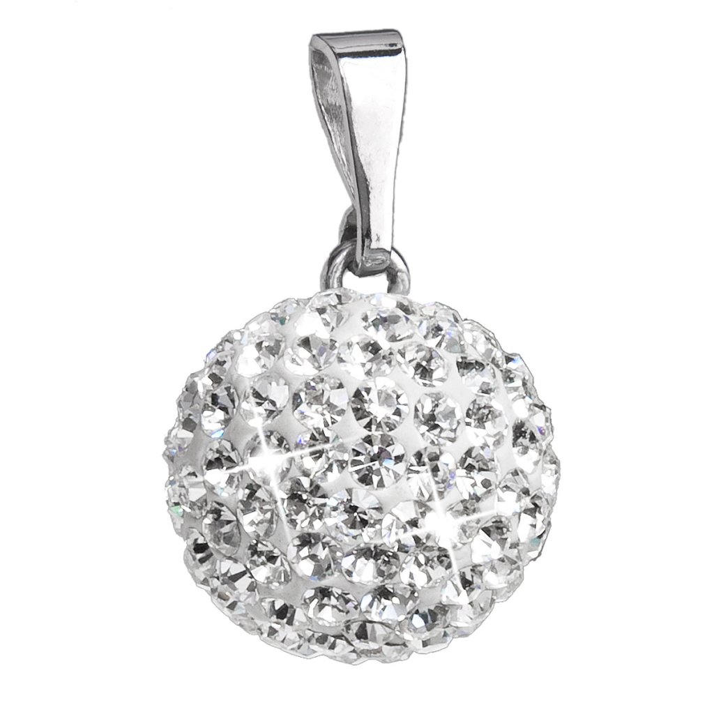 Strieborný prívesok s kryštálmi Swarovski biely okrúhly 34080.1